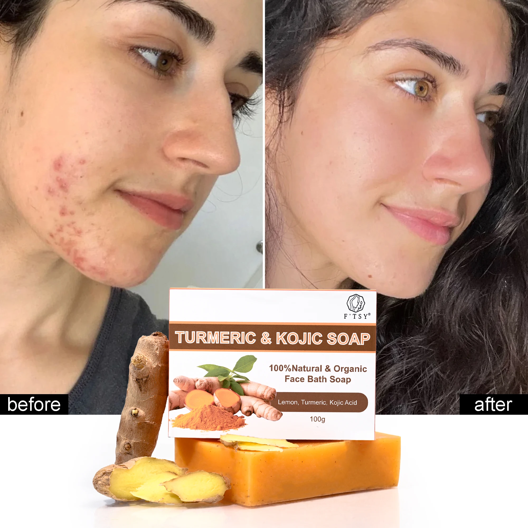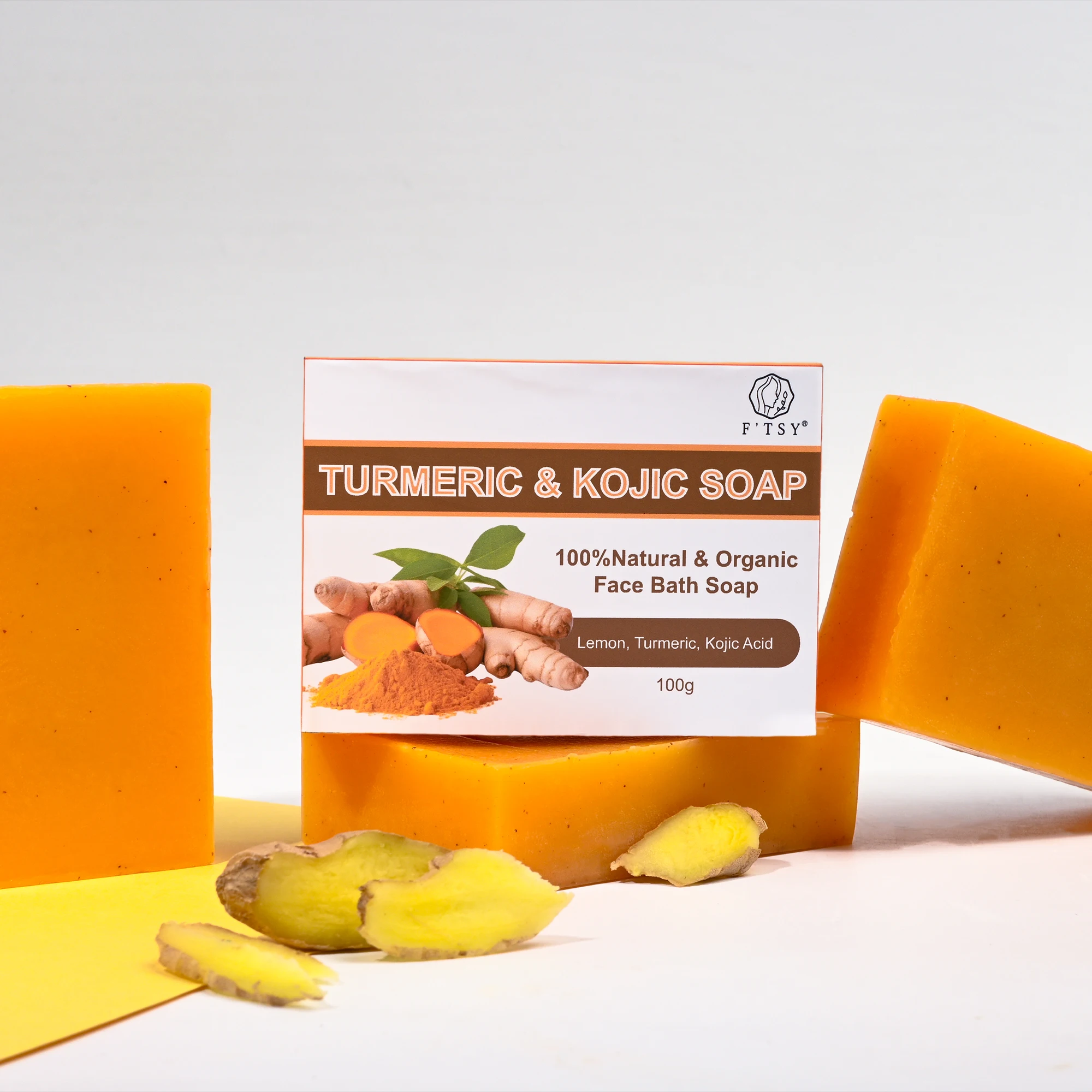WholeSale Hot Handmade Whitening Lightning Lemon Kojic Acid Tumeric and Turmeric Oil Control Bar Soap Face
