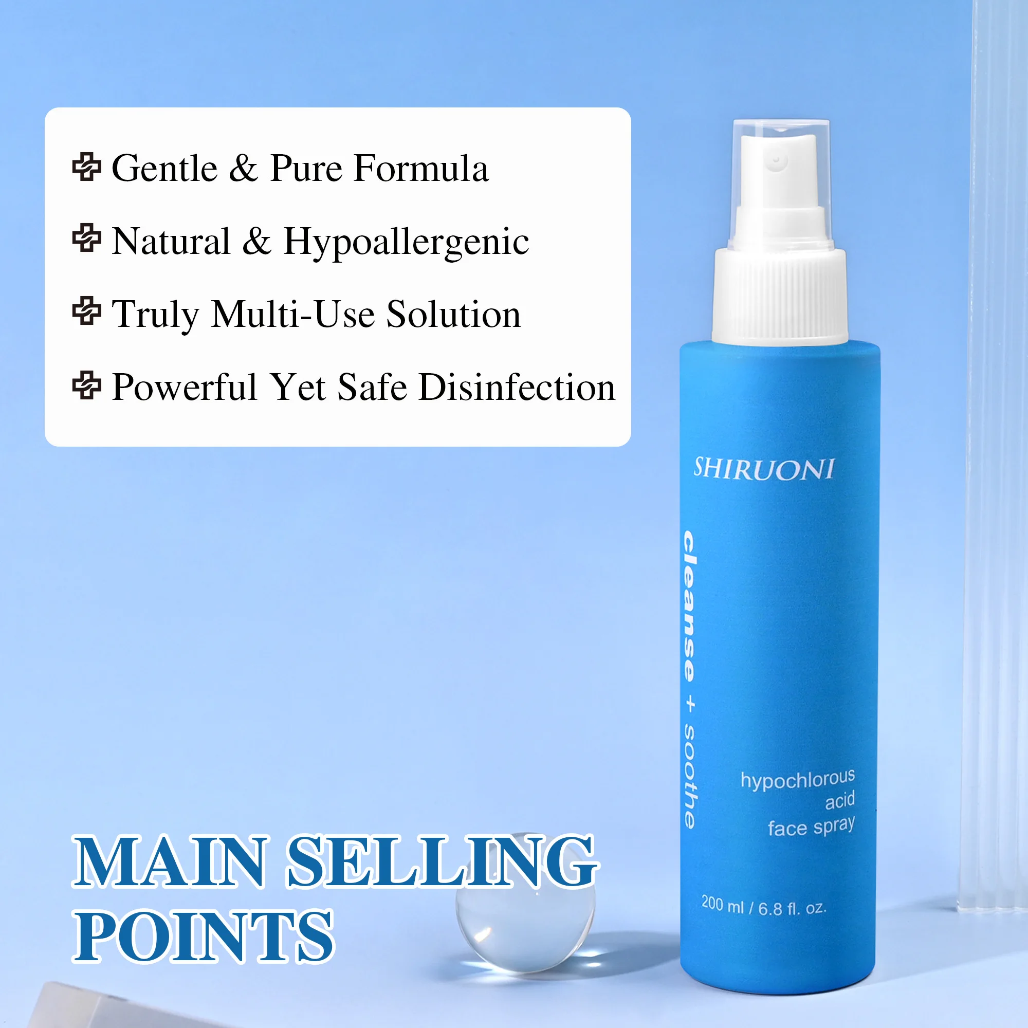 OEM ODM Organic Vegan Hypochlorous Acid SOS Spray Daily Facial Mist for Skin Calming Soothing Lightening Anti-Wrinkle Glow