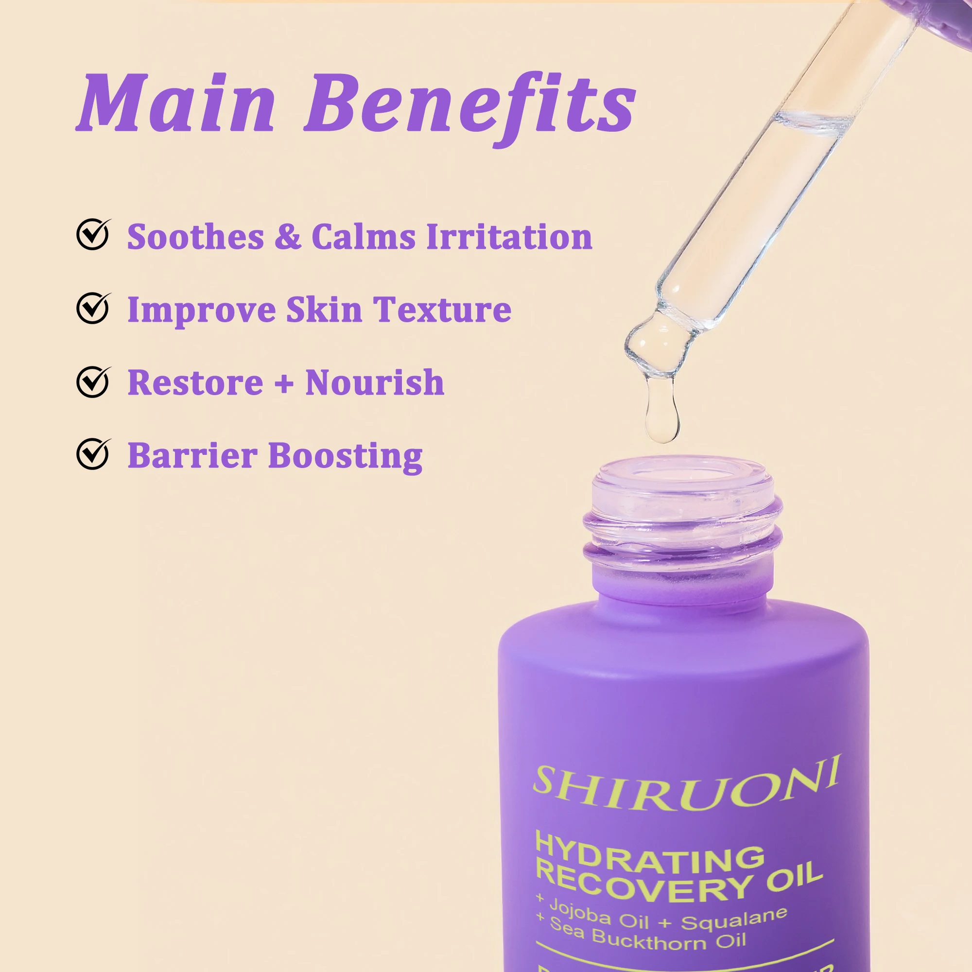 Custom Logo Organic Squalane Face Oil Hydrating Repairing Serum Firming Lightening Moisturizer for Facial Skincare