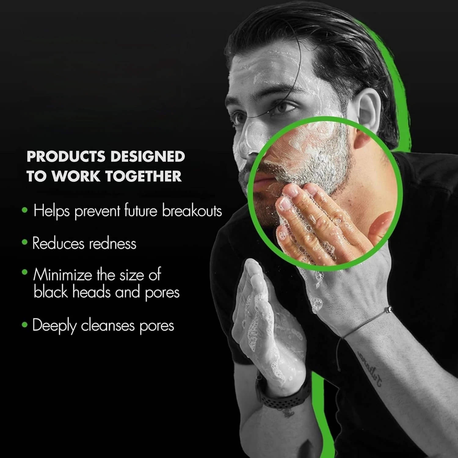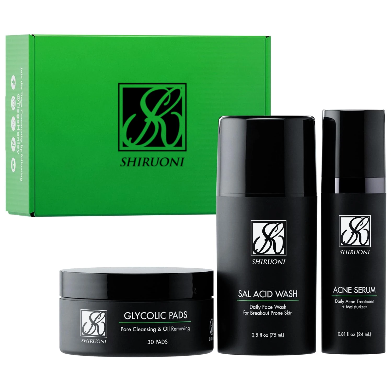 OEM Men Face Wash Serum Glycolic Pads Pore Cleansing Oil Removing Moisturizer Reduces Redness Black Heads Pores Men Skincare Set