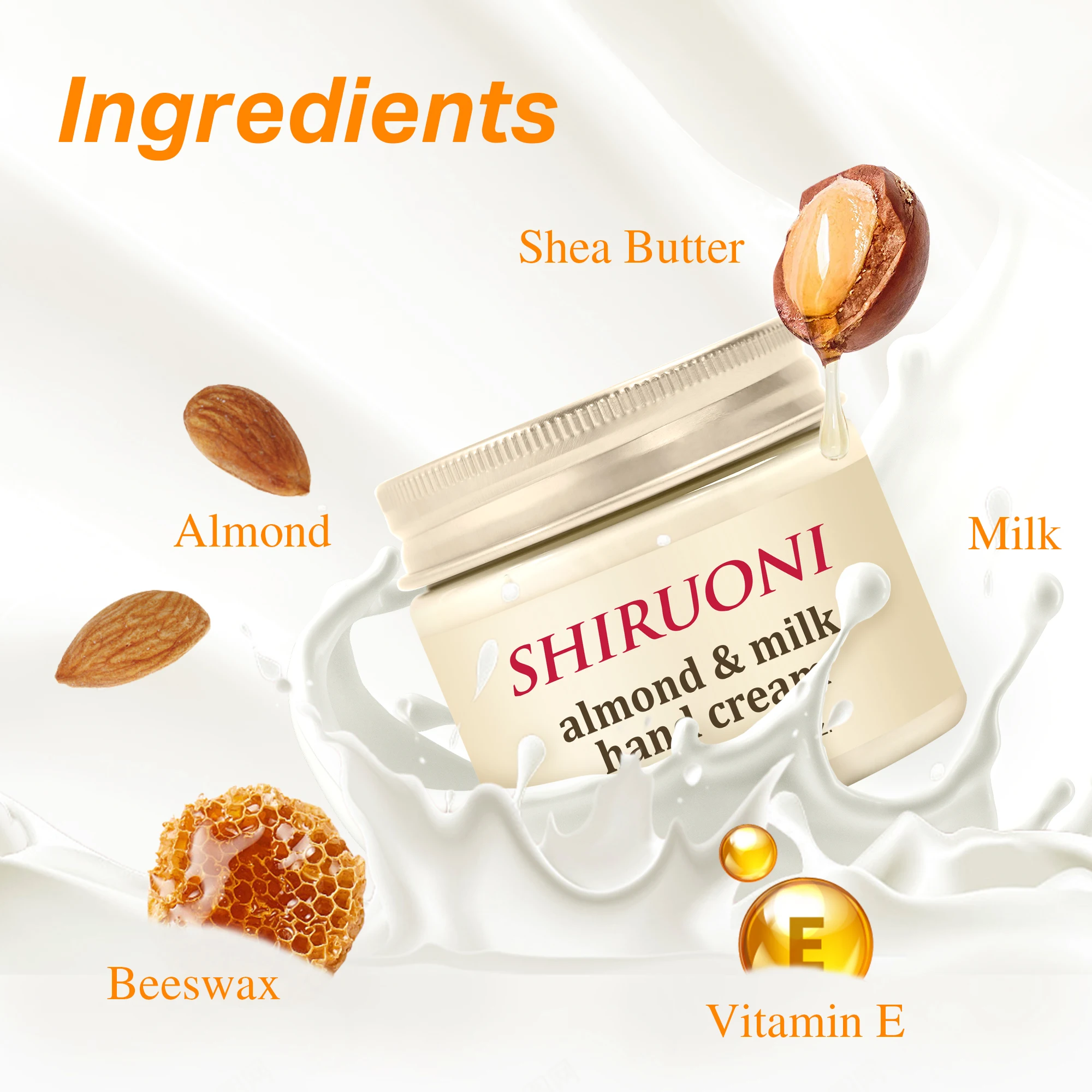 Wholesale Vegan Almond Milk Hand Cream Shea Butter Vitamin E Minerals Moisturizing Whitening Nourishing Firming Lotion OEM ODM