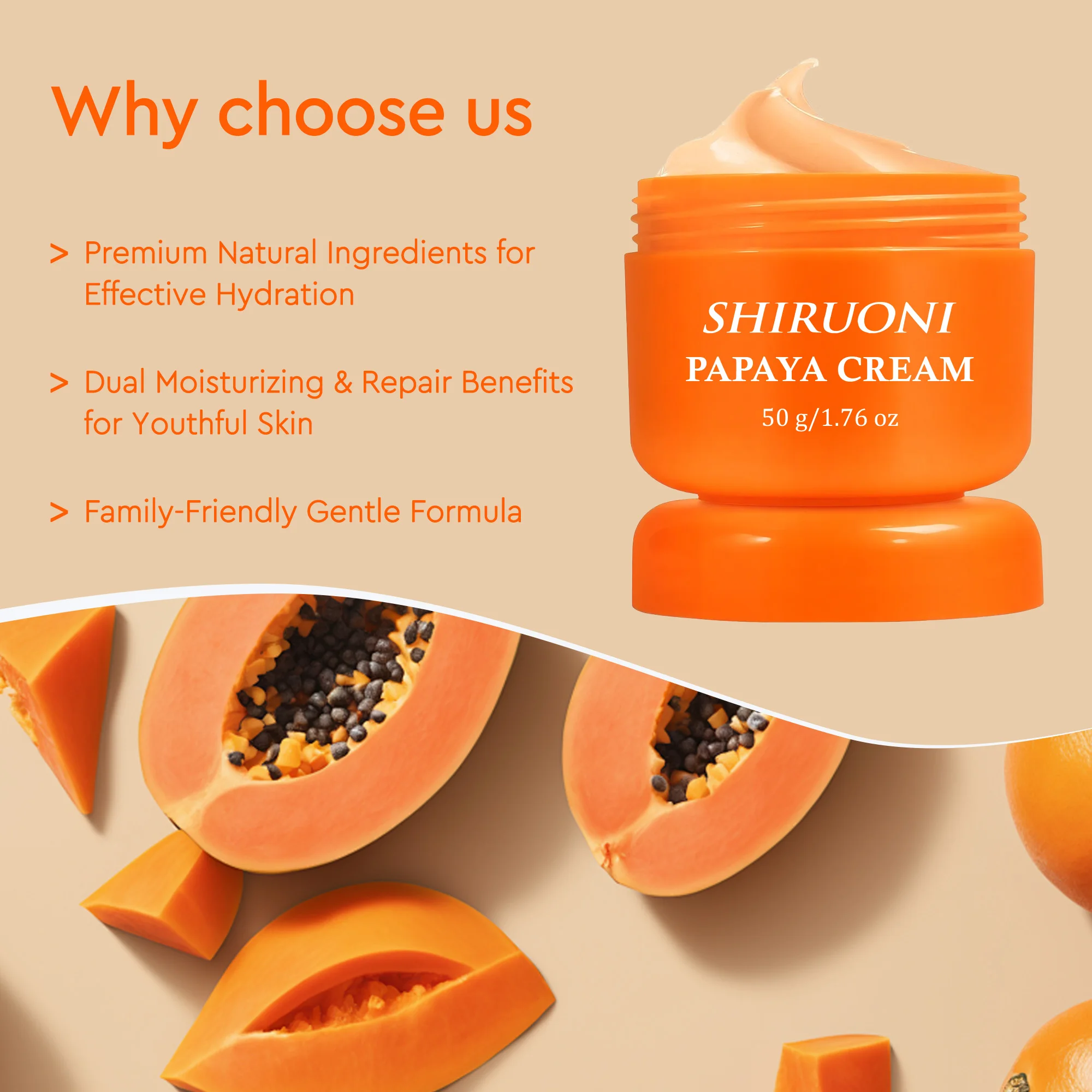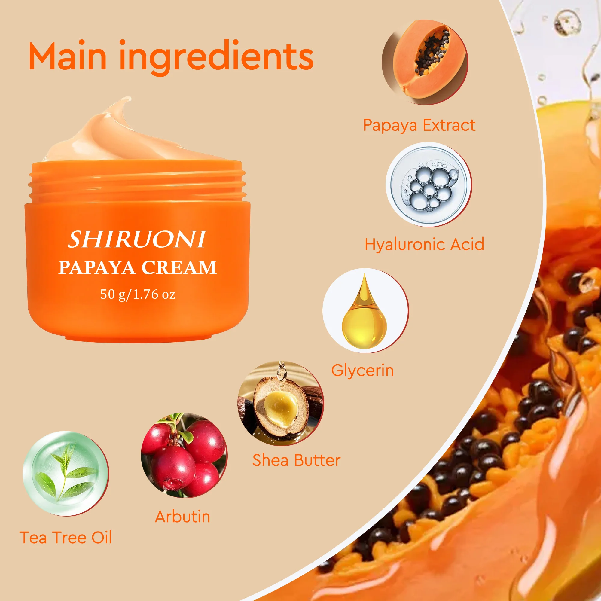 Private Label Papaya Face Cream Moisturizer Repair Cream Deep Hydrating Tea Tree Oil Arbutin Soothes Even Skin Tone Papaya Cream