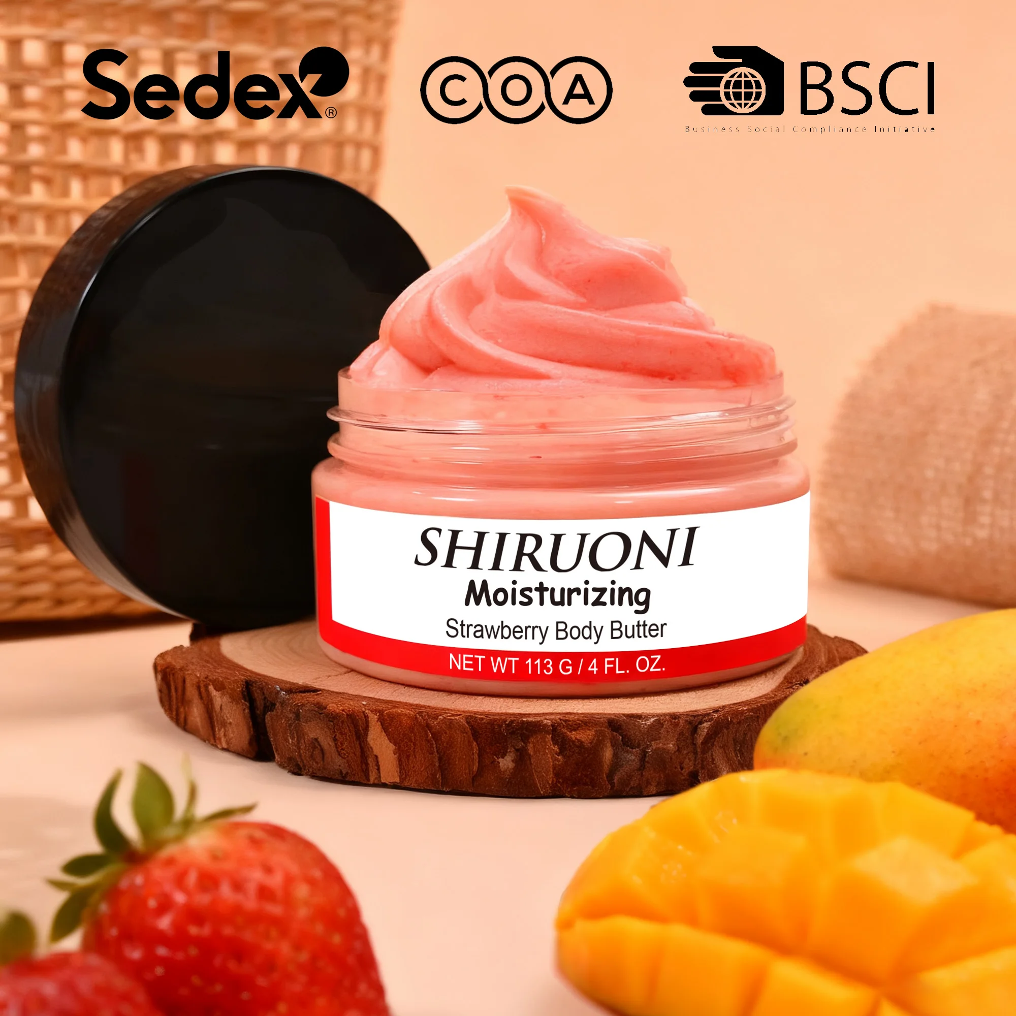 Private Label Natural Vegan Strawberry Cream Body Skin Moisturizing Whitening Anti-Wrinkle Body Butter with Shea Butter