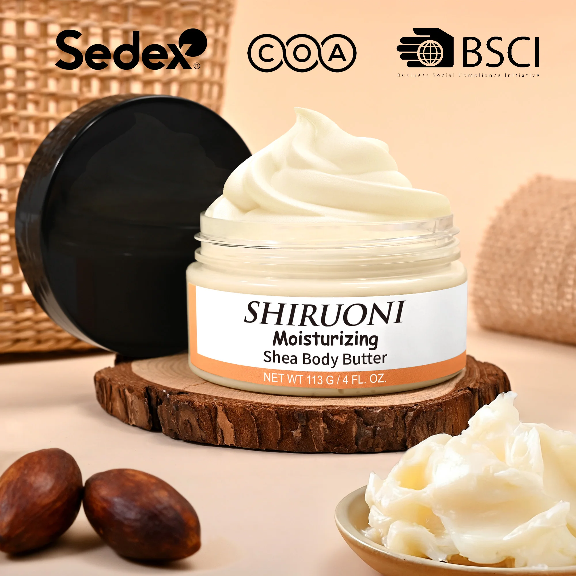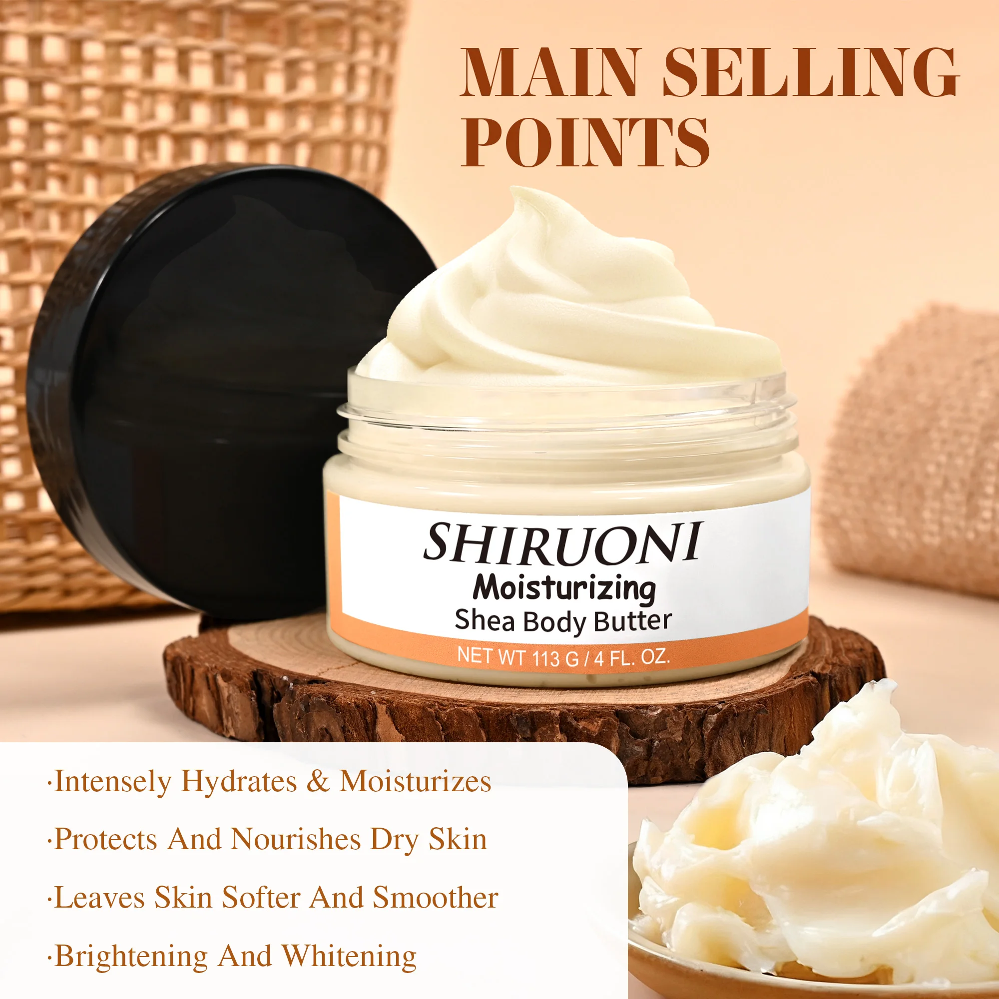 OEM ODM Organic Natural Whipped Shea Butter Body Butter Cream with Vitamin E Oil Softer Skin Smoothing Deeply Hydrating Lotion