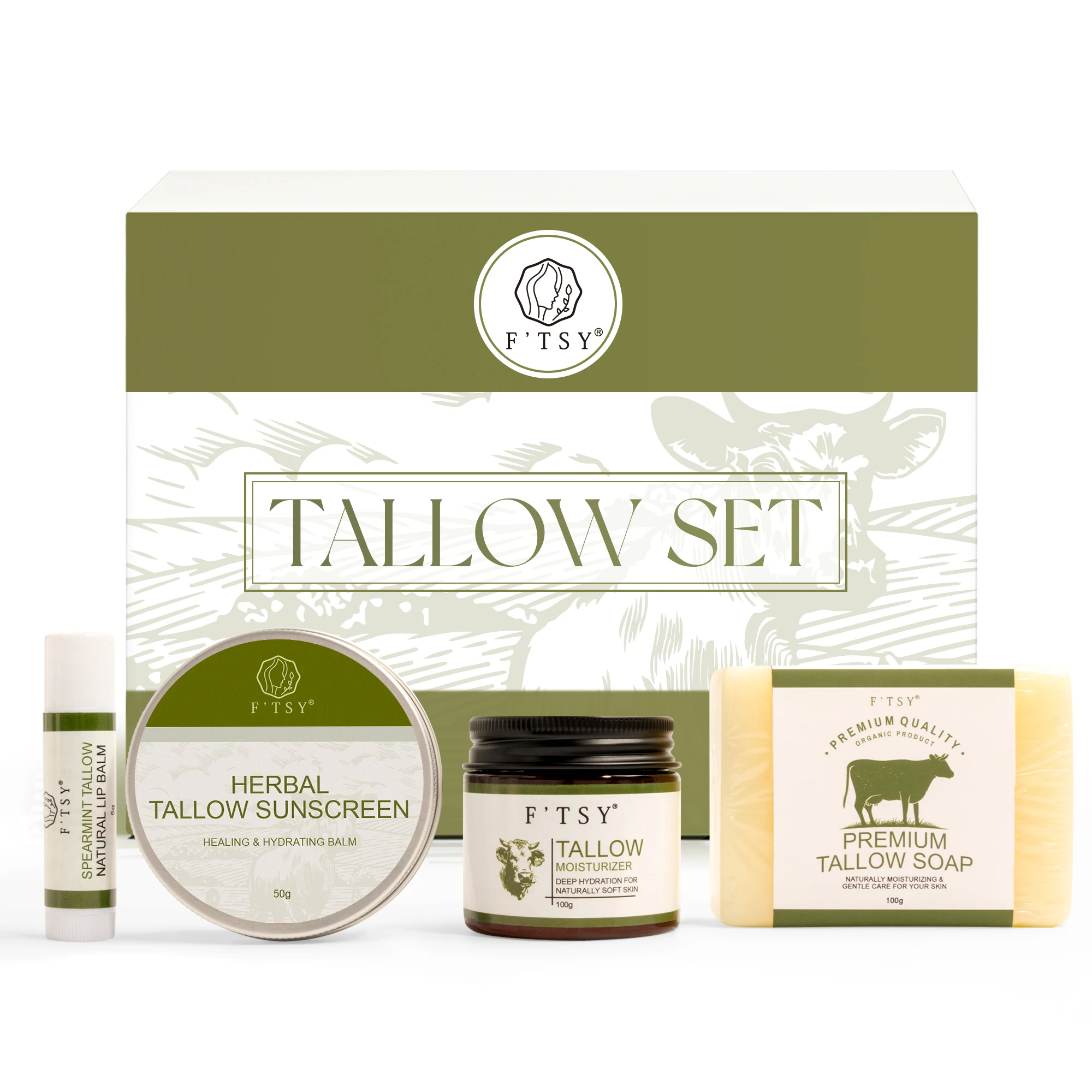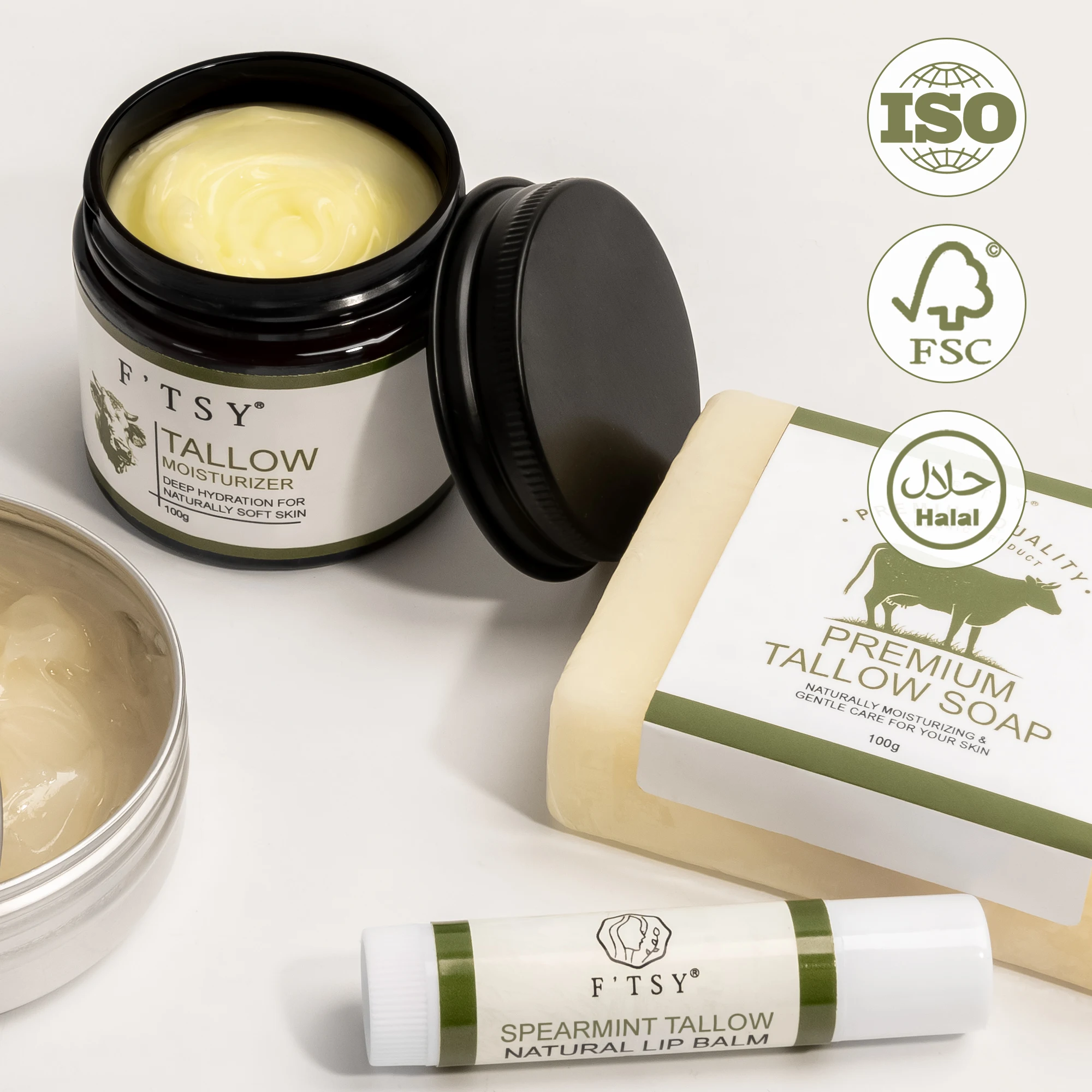 OEM/ODM Organic Natural Beef Tallow Facial Skin Care Set Face Whitening Moisturizing Calming Skincare Kit