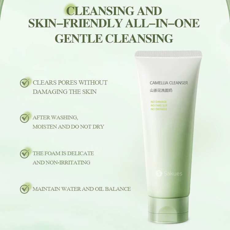 OEM Custom Camellia Facial Cleanser Comfortable Mild Foam Dense Cleaning Oil Control Triple Amino Acid Facial Cleanser OBM