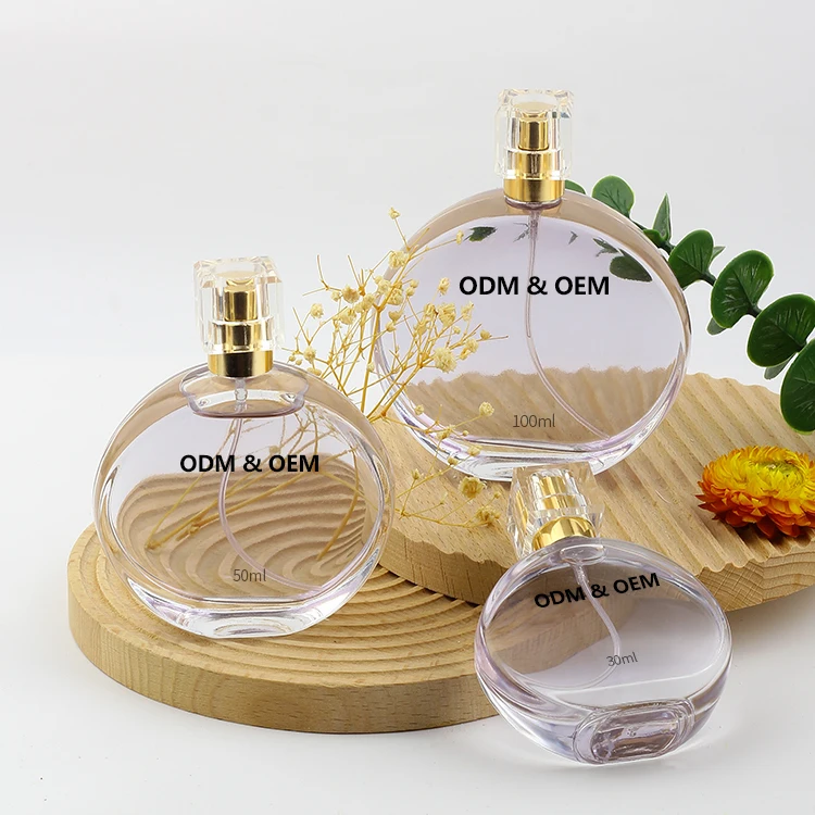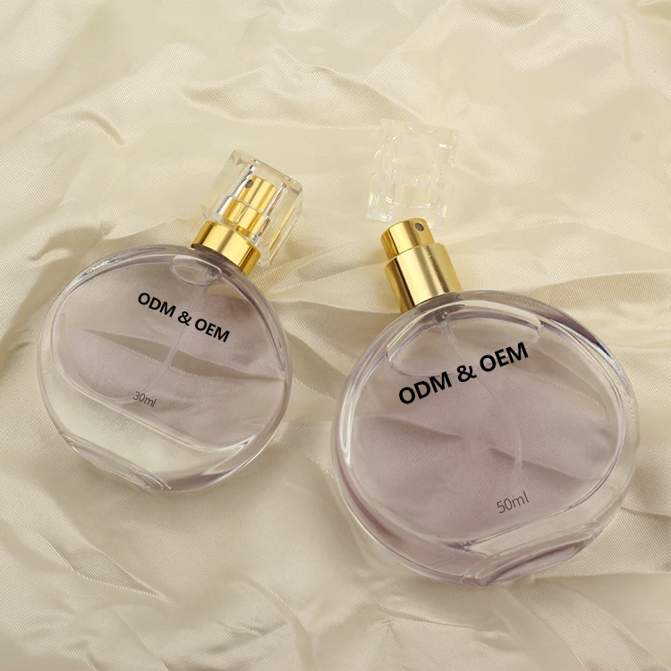Very Good Quality Luxury Glass Clear Round Cosmetic Skincare Packaging 30ml Lotion Pump Bottle