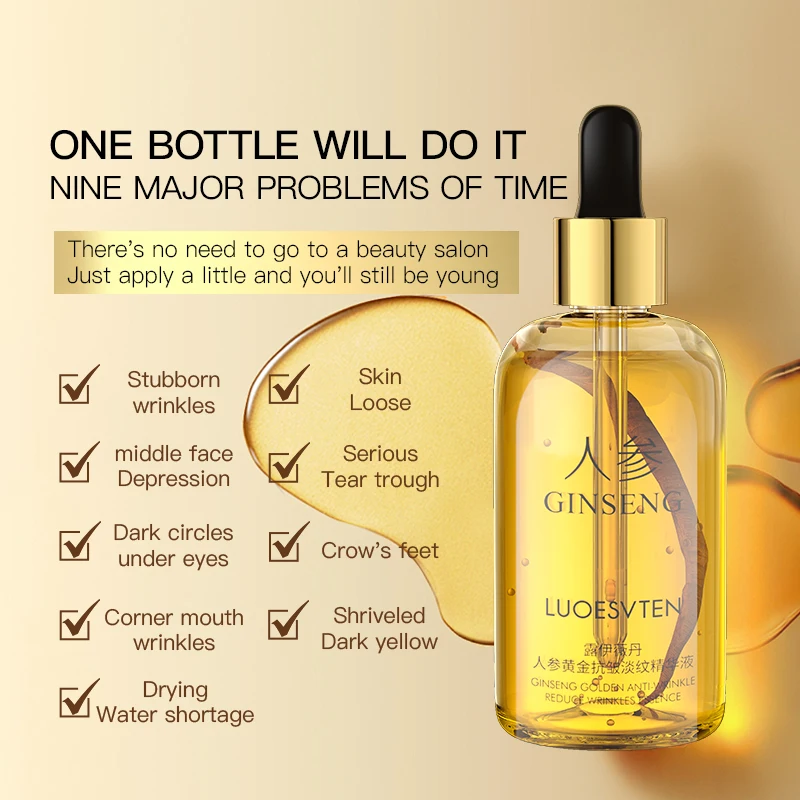 Private Label Nourish Skin Reduce Wrinkles Lighten Dark Circles Under Eyes Ginseng and Cordyceps Extract Essence Serum Oil