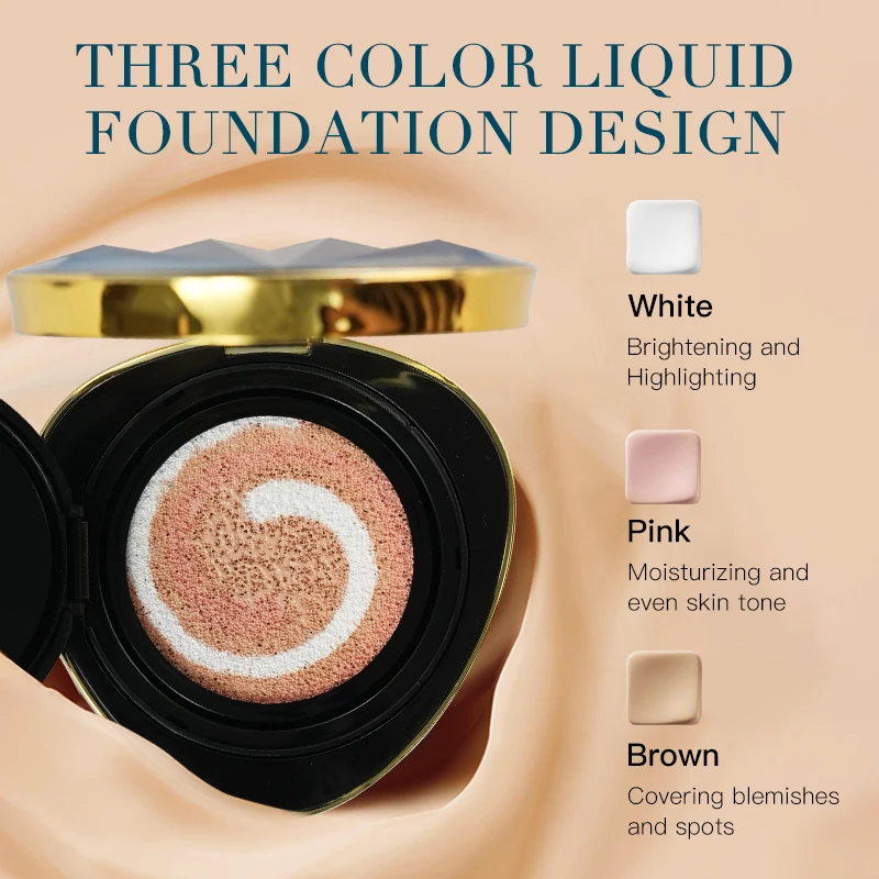 Private Label Moisturizing Isolation Concealer 3 in 1 Mixed Color Liquid Foundation air Cushion with Puff and Refill in Gift Box