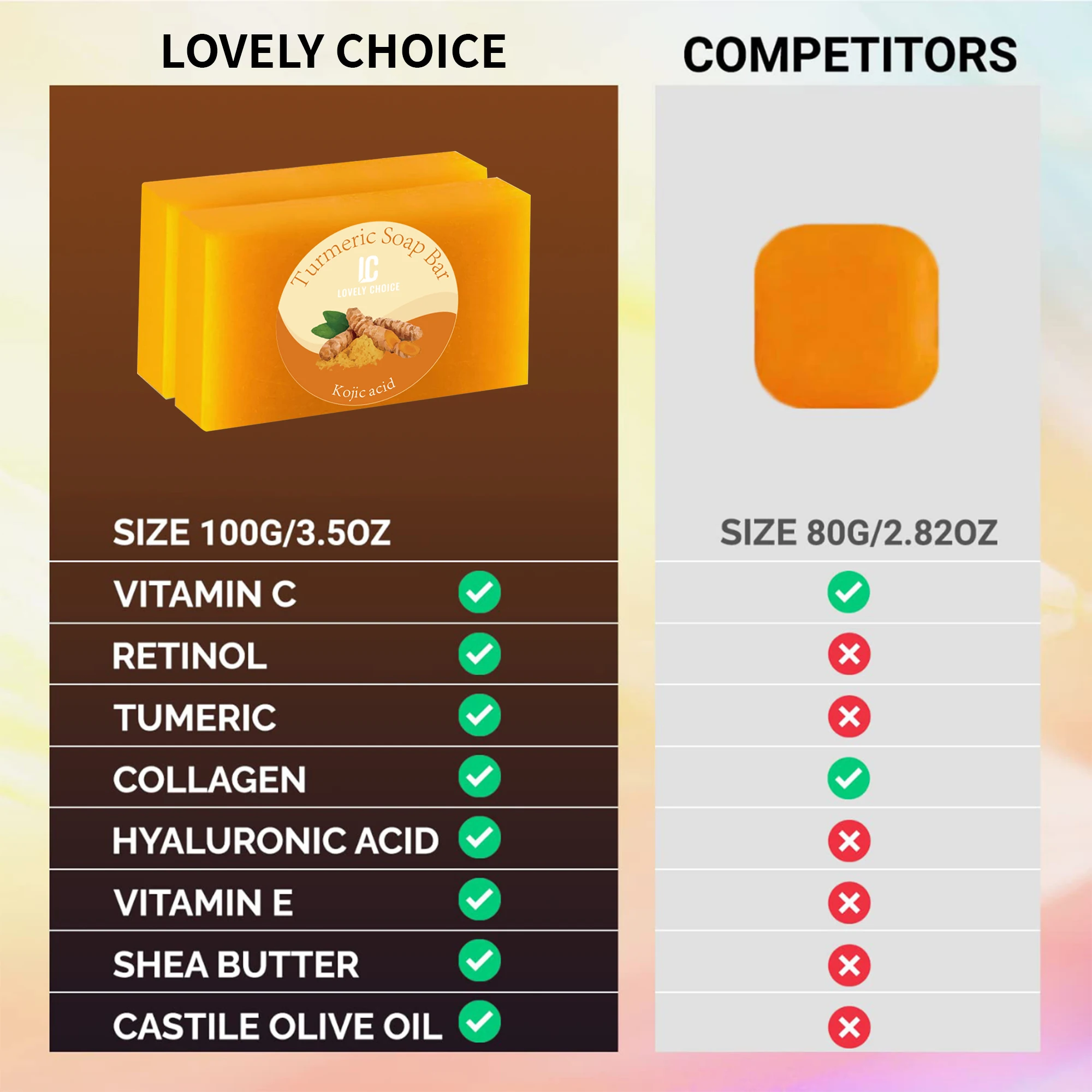 Organic Face Care Solid Turmeric Kojic Acid Soap Whitening Anti-Aging Fades Acne Marks Potent Brightening Deep Bar Soap
