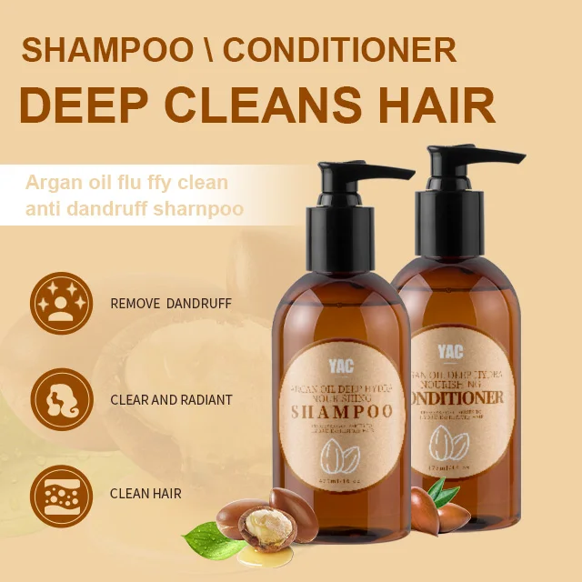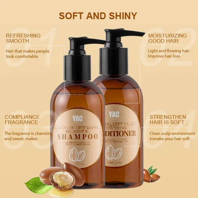 Custom Silicone-Free Argan Oil Shampoo Conditioner Set Moroccan Natural Care Moisturizing Smoothing Anti-Hair Loss for Damaged