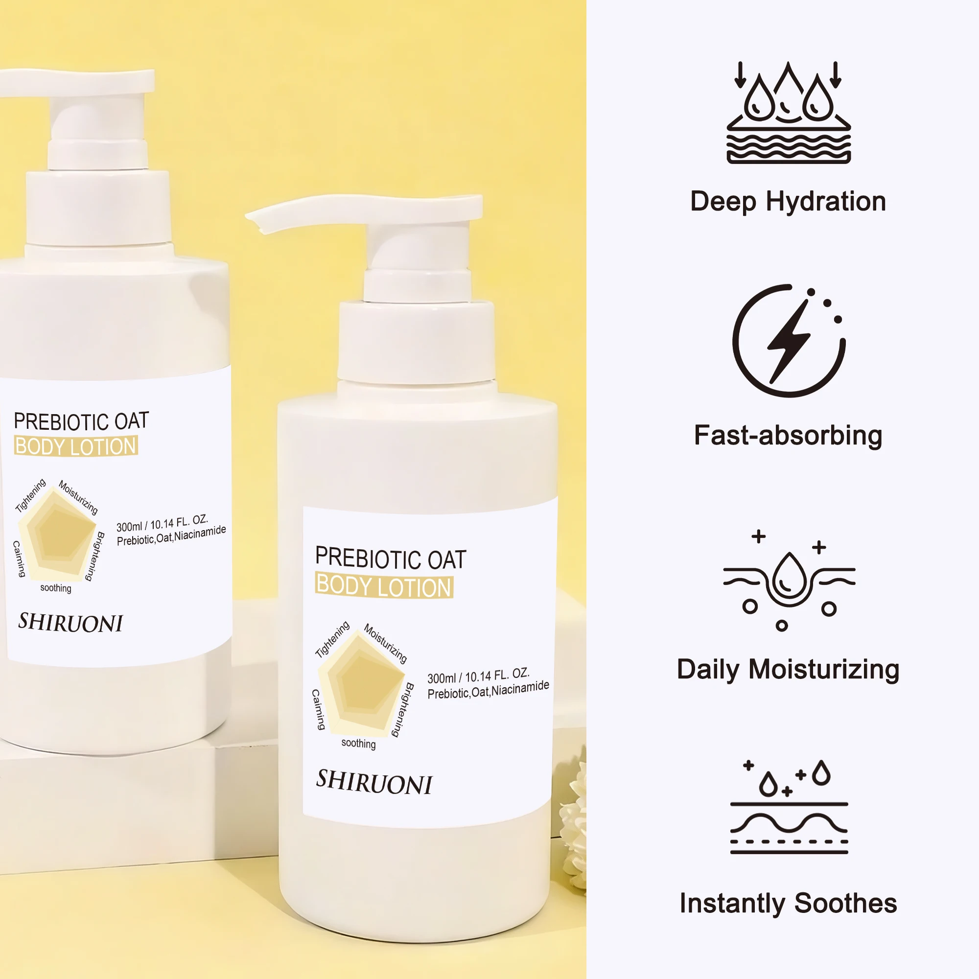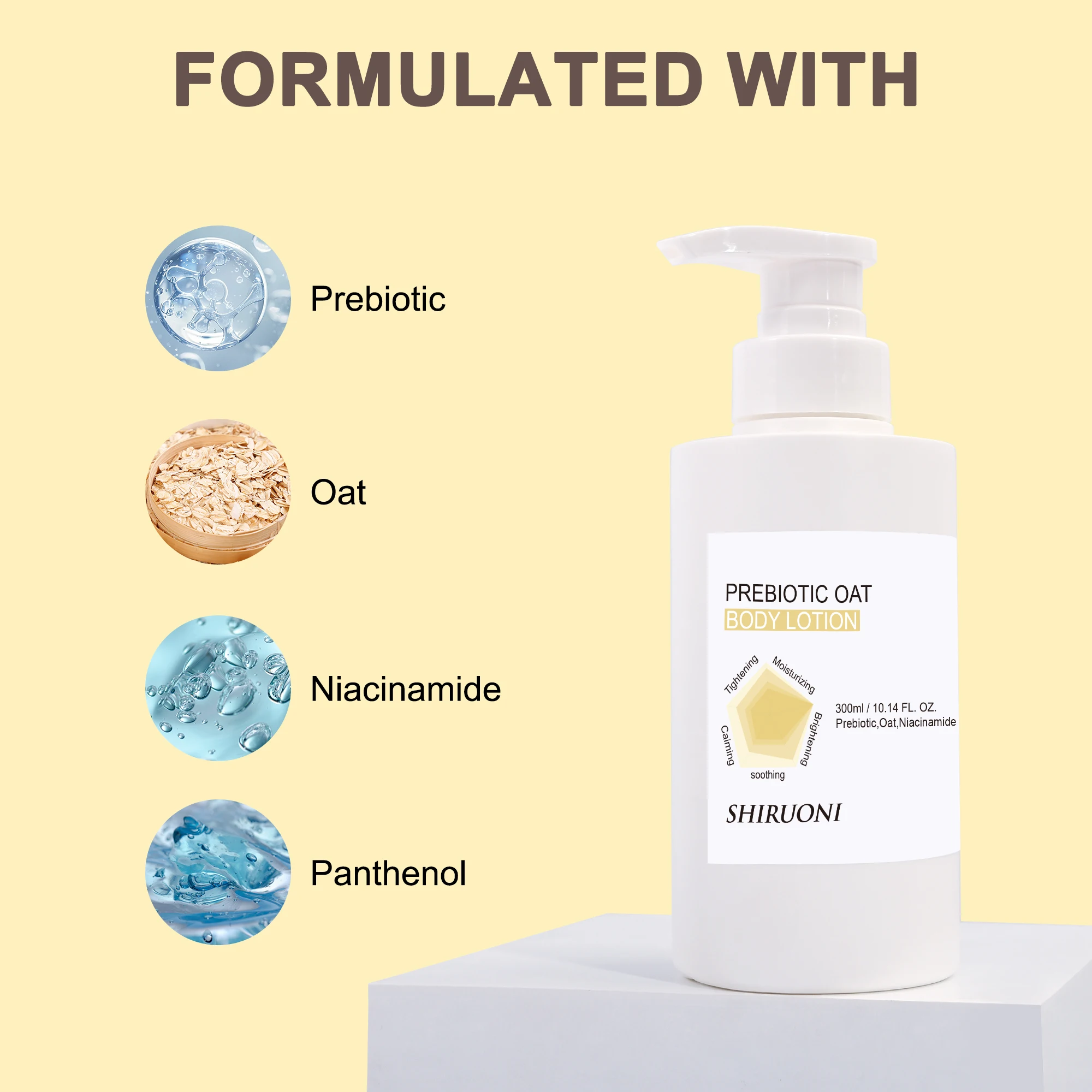 OEM Prebiotic Body Lotion Moisturizing Tightening Brightening Soothing Caiming Body Lotion Prebiotic Oat Niacinamid Body Lotion