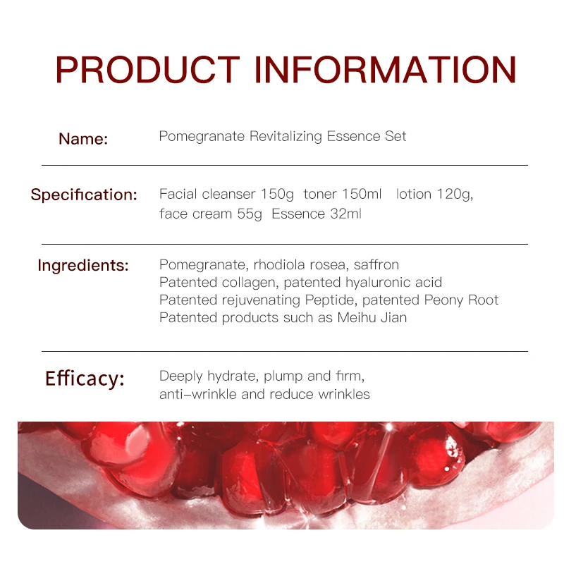 Pomegranate Moisturizes and Brightens the Skin Cleanser,toner,serum,lotion,face Cream Skincare Set for Face Care