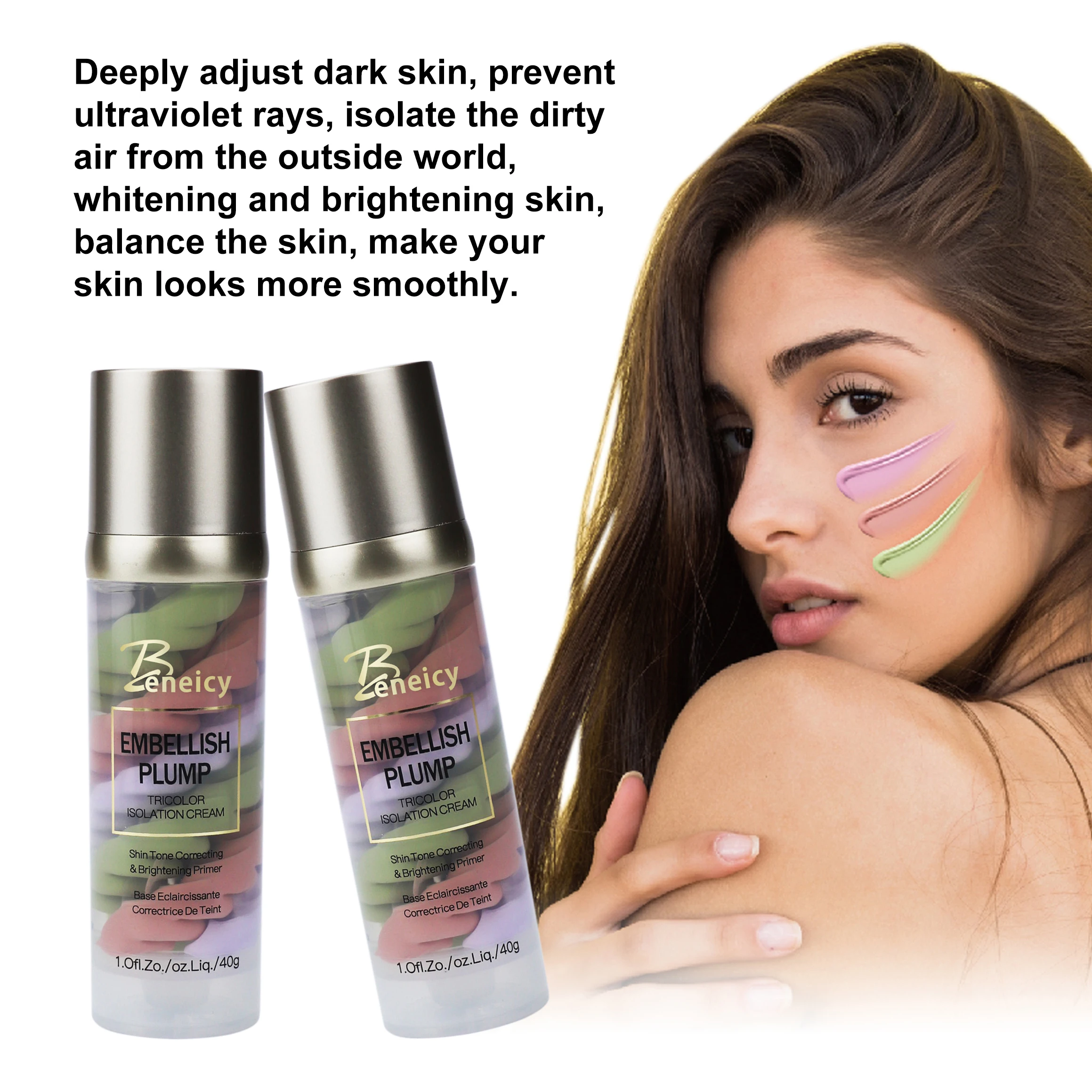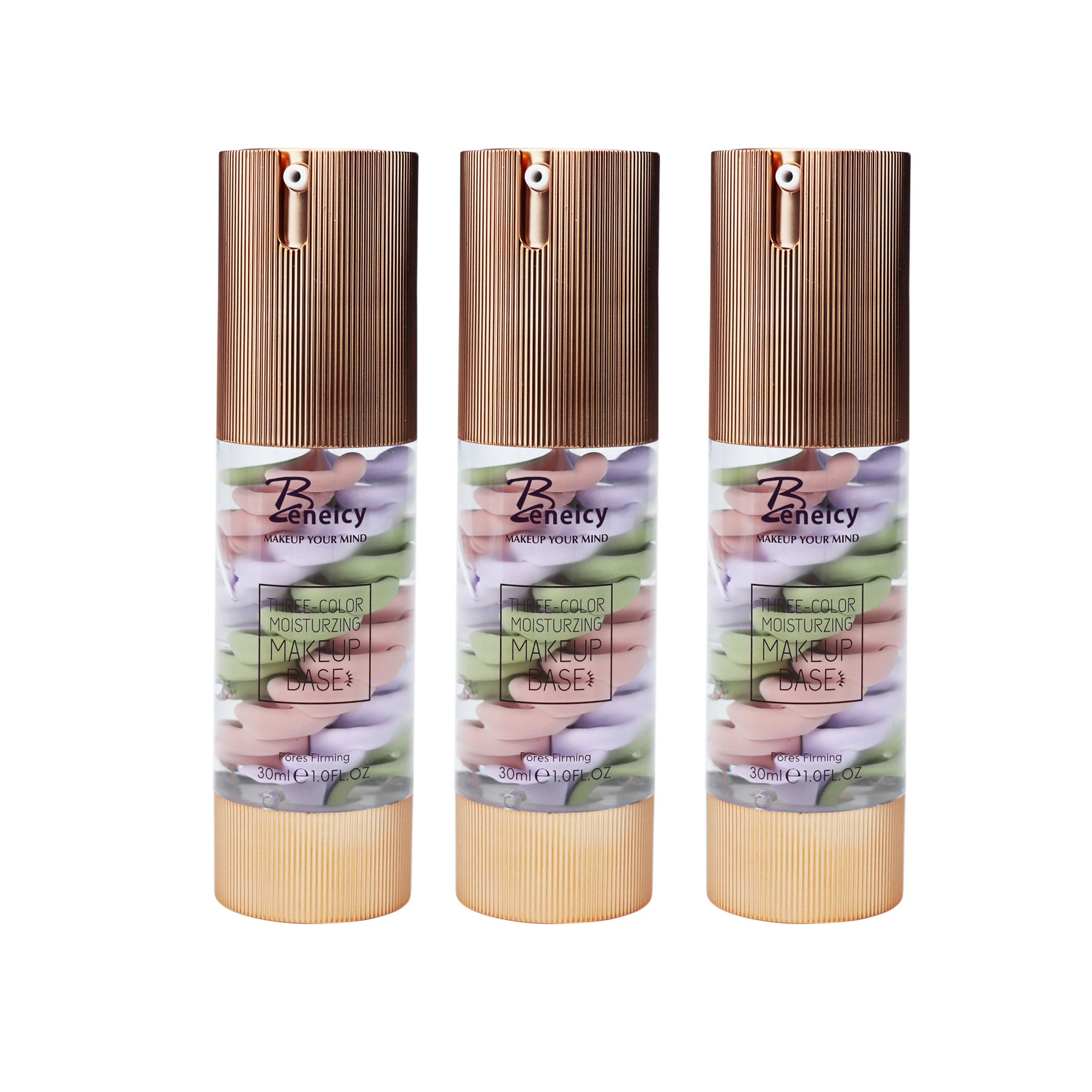 2026 Custom Logo Tricolor Makeup Primer Oil-Control Base Whitening Mineral Face Primer with Private Label