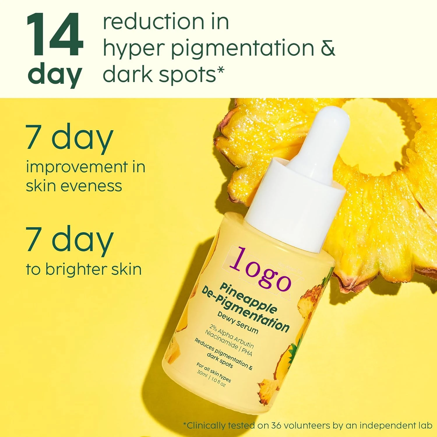 Brighten Alpha Arbutin Pineapple Depigmentation Dewy Face Serum Wholesale Custom Logo Dark Spots 10% Niacinamide, 5% PHA for all