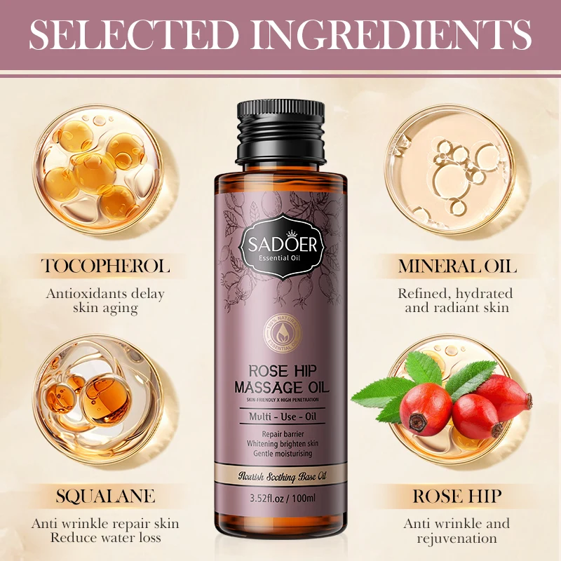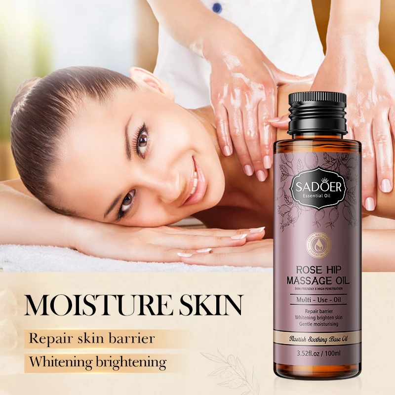 OEM SADOER Private Label Plant Fruit Massage Oil Skin Care Products Organic Rose Whitening Moisturizing Body Essential Oil