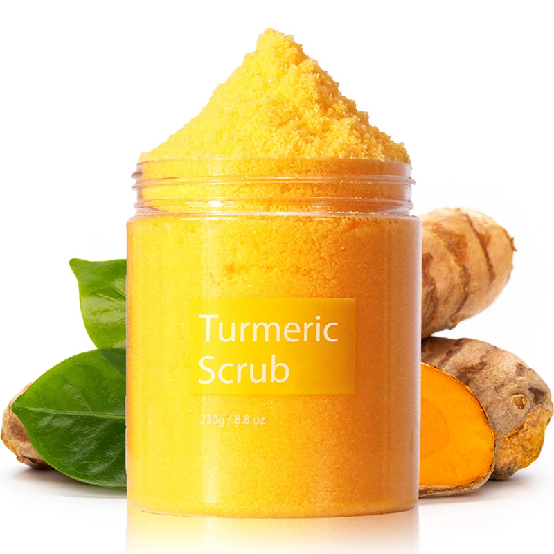 Custom 220g Body Scrub with Vitamin C Turmeric Sea Salt for Whitening Exfoliating Moisturizing Smooth Skin Bath Treatment