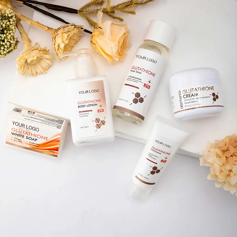 Custom Label Organic Skin Care Set Glutathione Facial Cleanser Toner Cream Body Lotion Brightening Moisturizing for Face