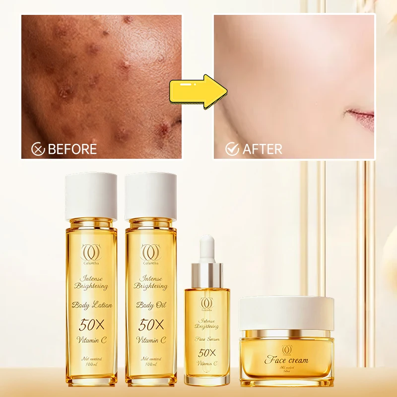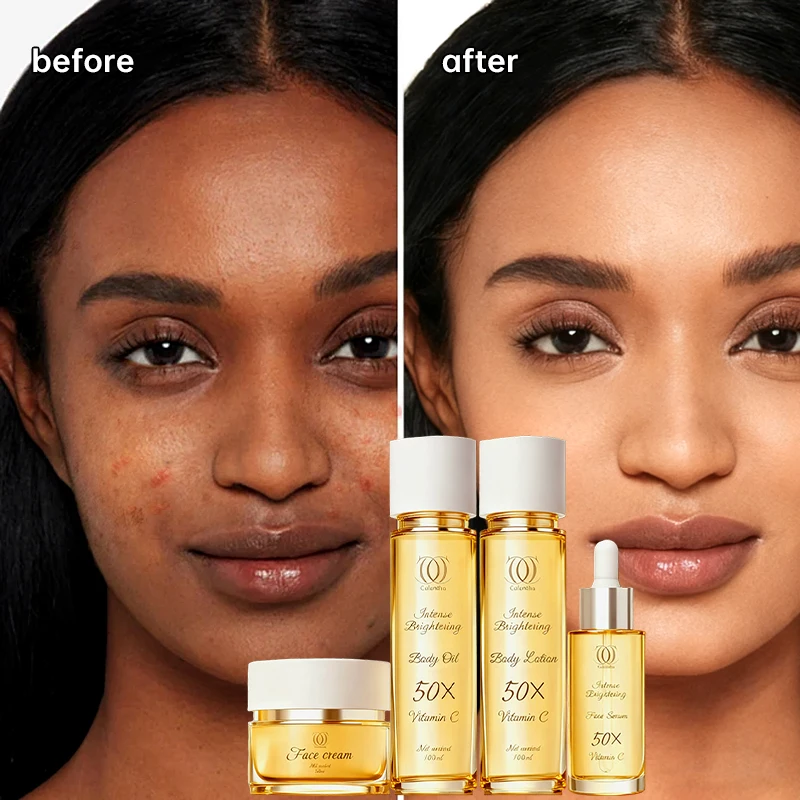 Calantha Glycolic Acid Kojic Acid Vitamin C Glutathione Toner Cream Serum Exfoliating Whitening Glass Skin Skincare Set for