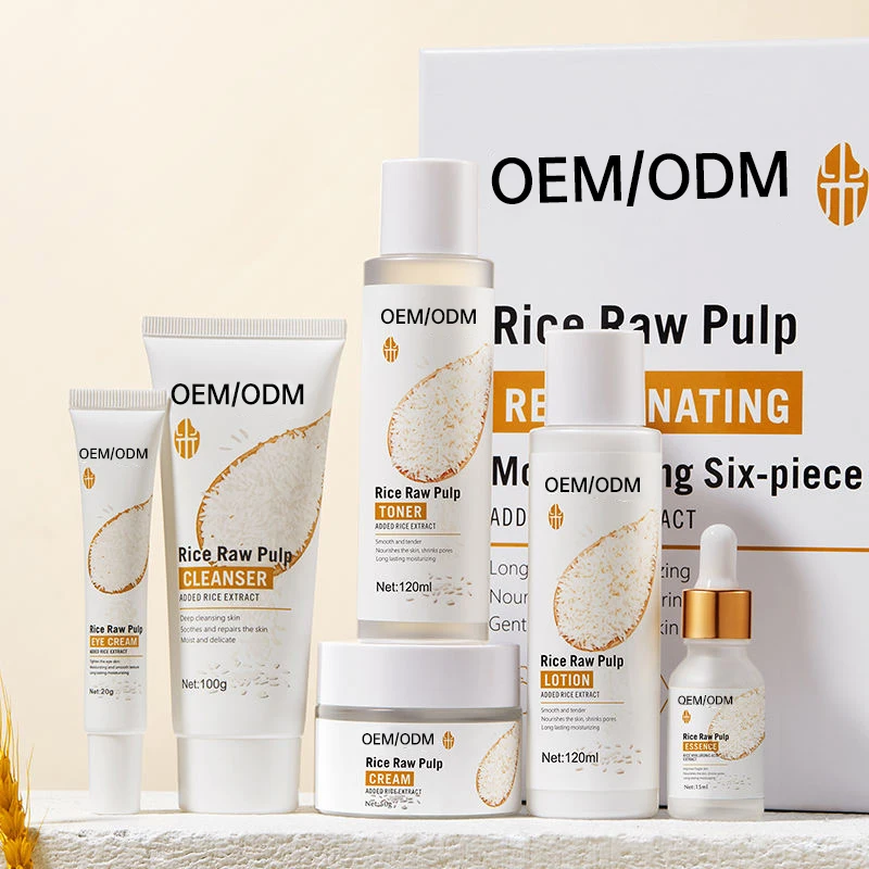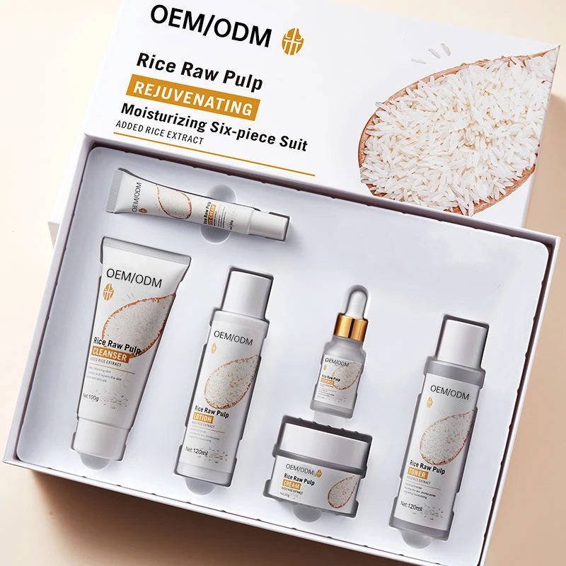 Private Label Natural Skin Care Set for Face Rice Puree Moisturizing Whitening Essence Cream Vitamin C Herbal New Lightening Use