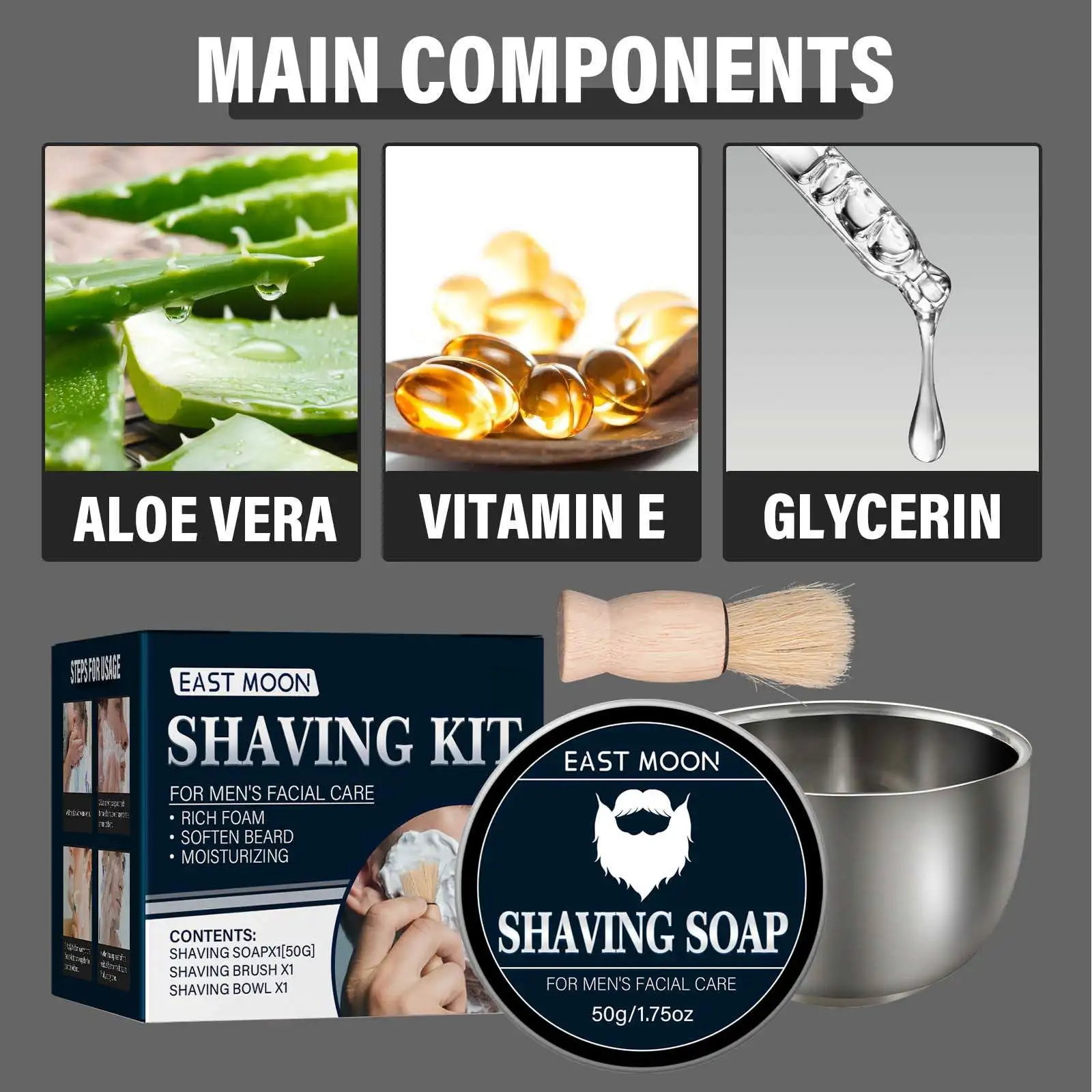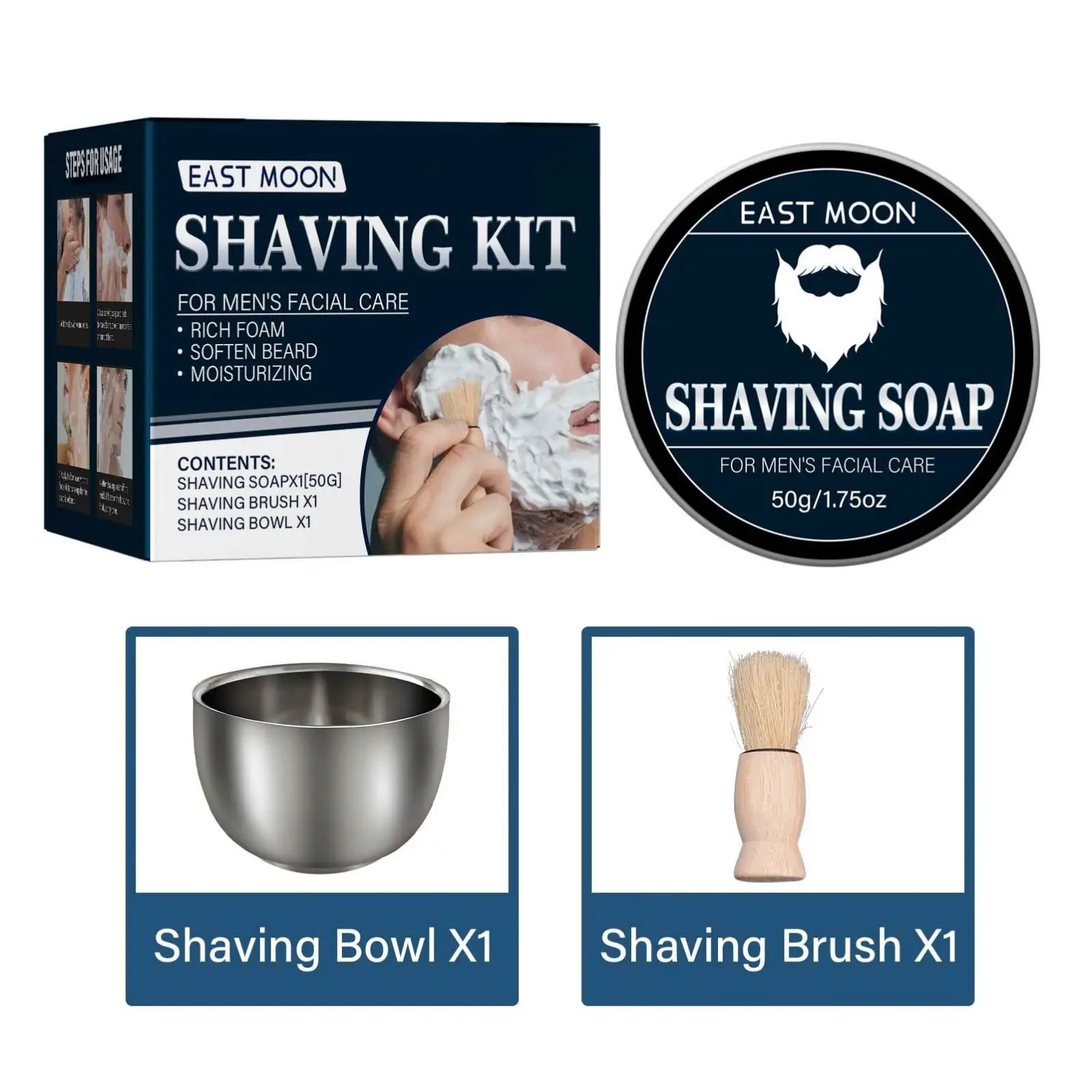 EAST MOON 50g Shaving Cream Men's Facial Beard Wax Goat Milk Beard Professional Shaving Cream Beard Removal Tools Shaving Soap