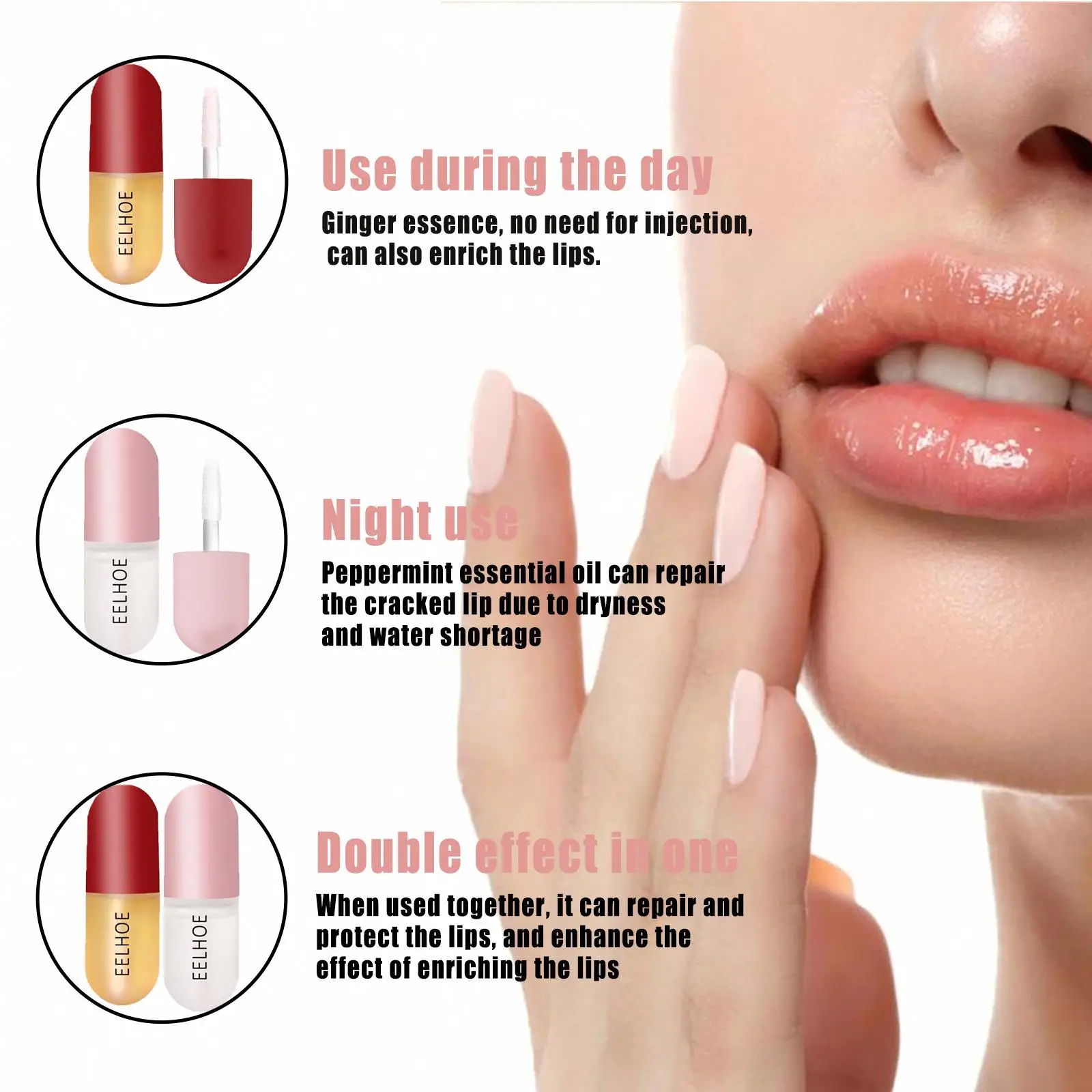 Day Night Instant Volume Lips Plumper Oil Moisturizing Repairing Reduce Lip Fine Line Serum Cosmetic Sexy Lip Gloss Makeup