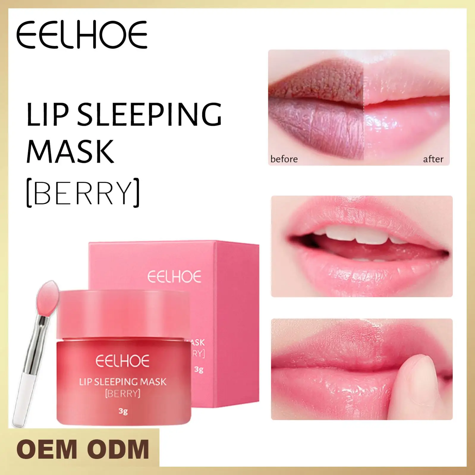 Costom Lip Mask Sleep Mask Night Sleeping Maintenance Moisturizing Lip Gloss Bleach Cream Strawberry Lip Balm 3g