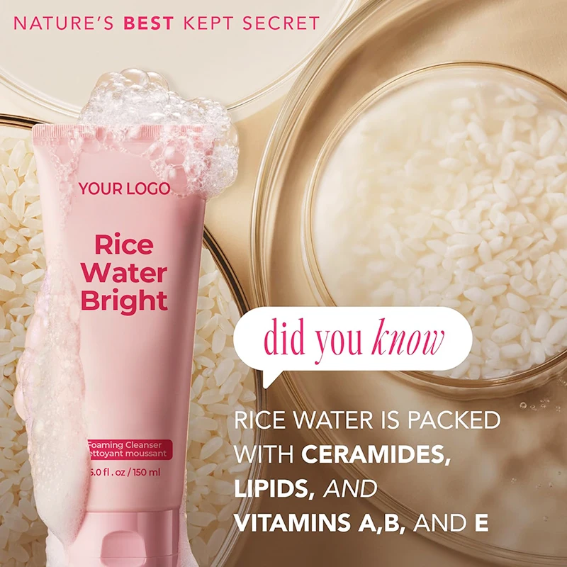 Organic Ceramide & Rice Water Facial Cleanser Natural Brightening Deep Cleaning Face Wash with Moisturizing Cake Formula