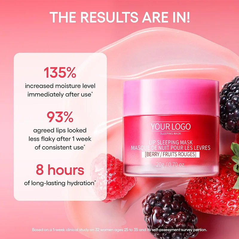 Private Label Coconut Oil Lip Mask Berry Infused Overnight Lip Therapy for Deep Hydration & Smooth Lips
