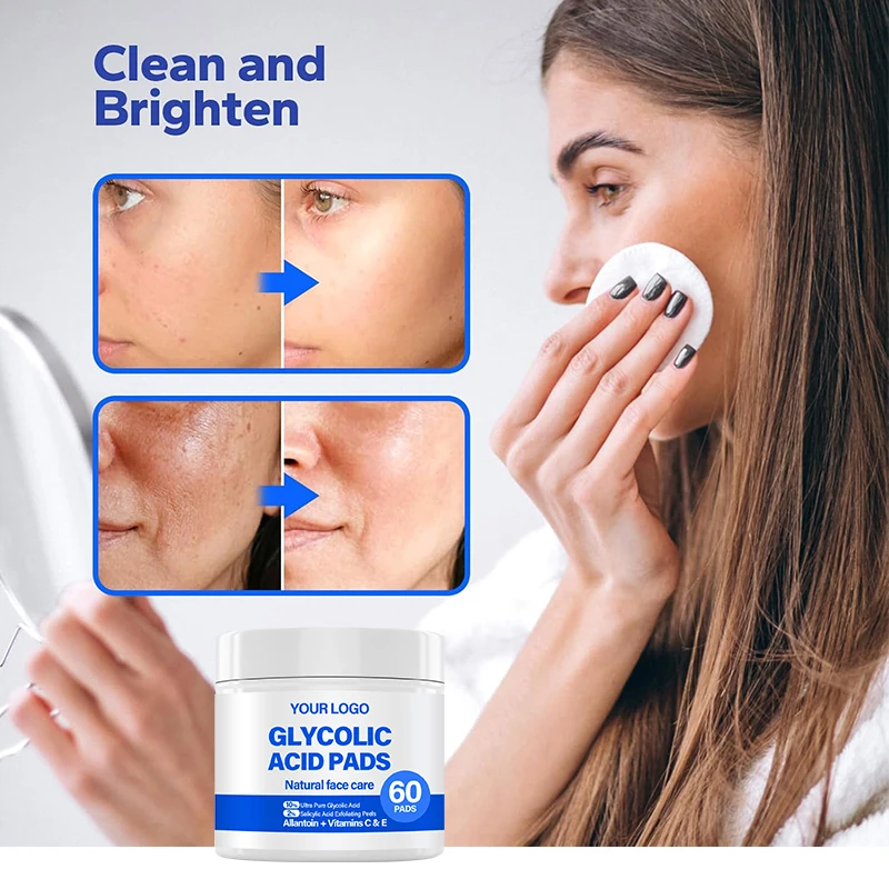 100% Organic Glycolic Acid & Salicylic Acid Cotton Pads AHA BHA Peel Pads for Face Exfoliating Acne & Pores Treatment