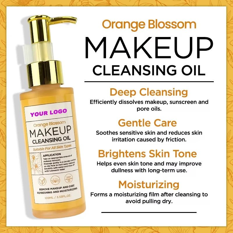 Vegan Mineral Gentle Cleansing Oil with Vitamin E & Sweet Orange Deep Pore Purifying Soothing Makeup Remover for Sensitive Skin
