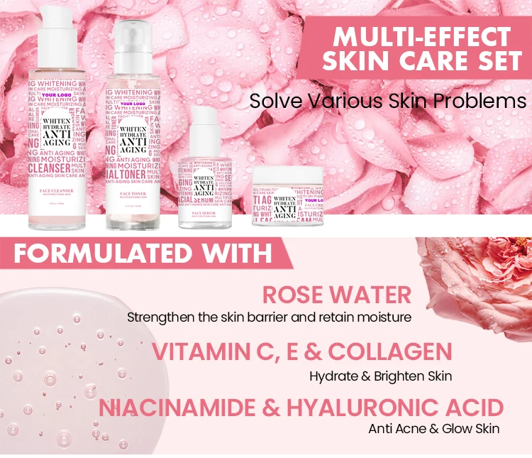 Hydrating Plumping Anti-Aging Rosewater Face Serum Collagen & Hyaluronic Acid Moisturizing Repair Face Serum for Dry Dull Skin