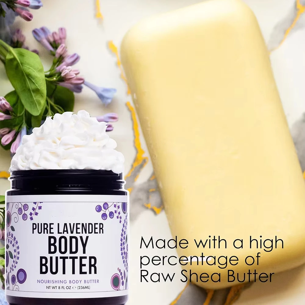 Soothing Fragrance-free Lavender Body Butter Hyaluronic Acid Shea Butter & Moisturizing Hydrating Calming Leaves Skin Soft