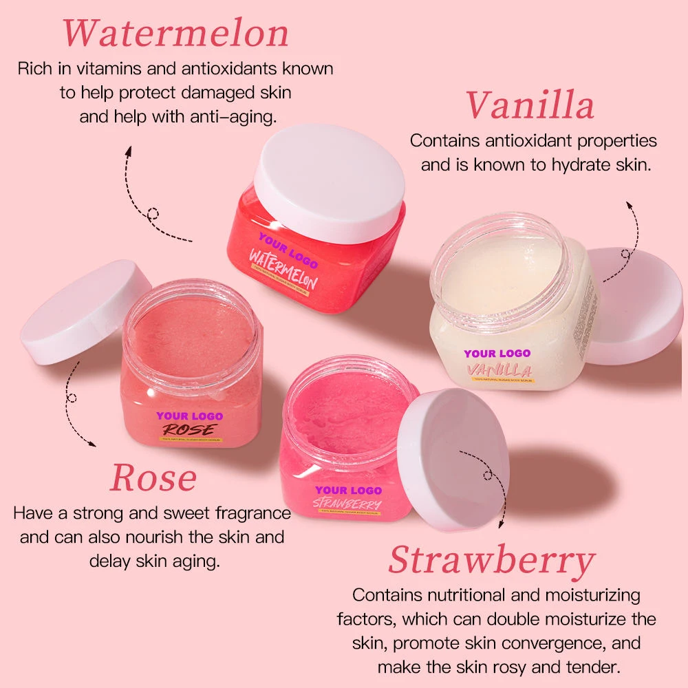Refreshing Brightening Sugar Body Scrub Paraben-Free Strawberry Vanilla Rose & Exfoliation Nourishing Soothing Even-Toned Skin