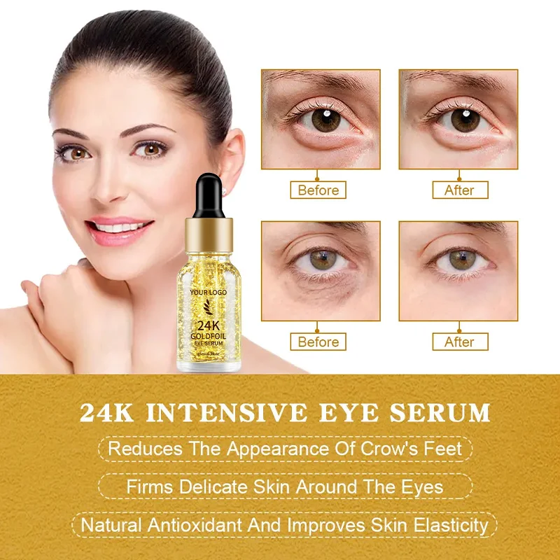 Luxury 24K Gold Collagen Aloe Vera Hyaluronic Acid Eye Serum Anti-Aging Anti-Wrinkle Moisturizing Hydrating Dark Circles