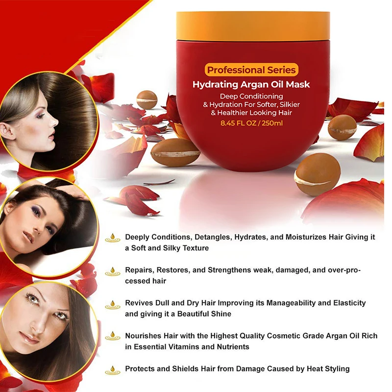 Argan Oil Hair Mask Cream for Damaged Hair-Leave-In Nourishing Repairing Treatment & Organic Herbal Hyaluronic Acid Keratin