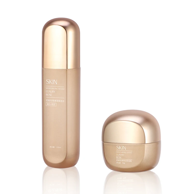 Customized 100ml Rose Gold Cosmetic Glass Lotion Bottle and Glass Cream Jar with Unique and Beautiful Shape
