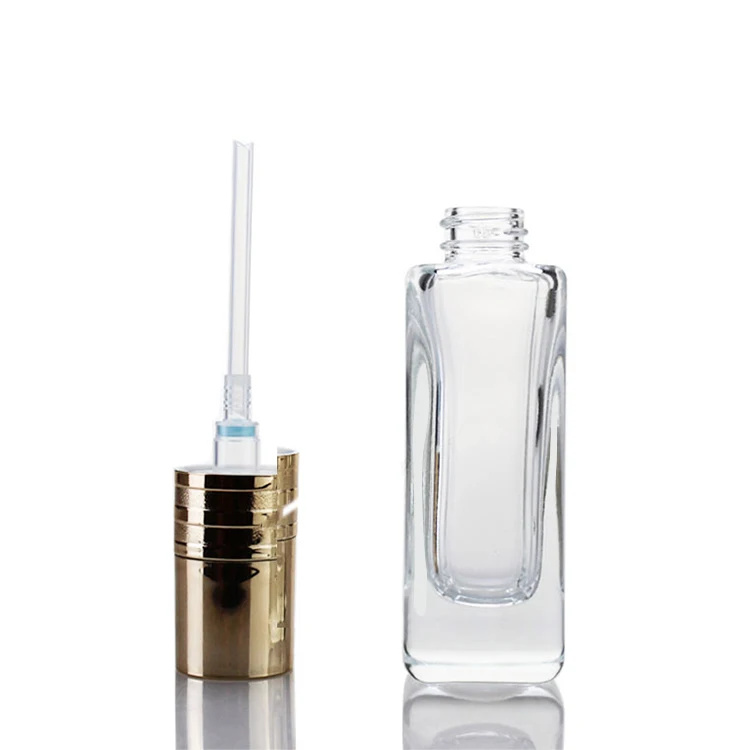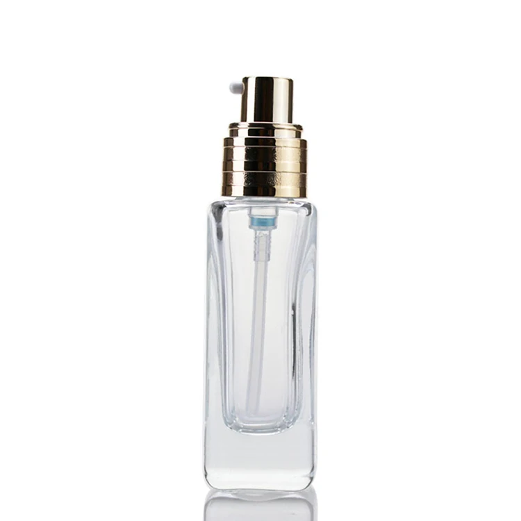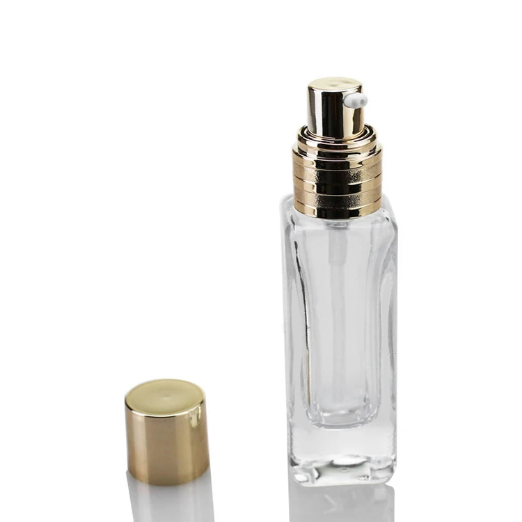 25ml Wholesale Best Price Cosmetic Packaging square Amber clear Empty Serum Lotion Foundation Glass Bottle with Pump