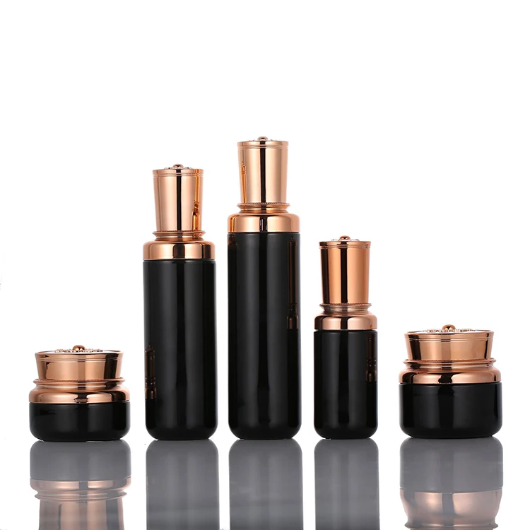 Black Gradient square 20g 50g Glass Jar and Black and Matt Gold Lid Glass Packaging Set 40ml 100ml 120ml