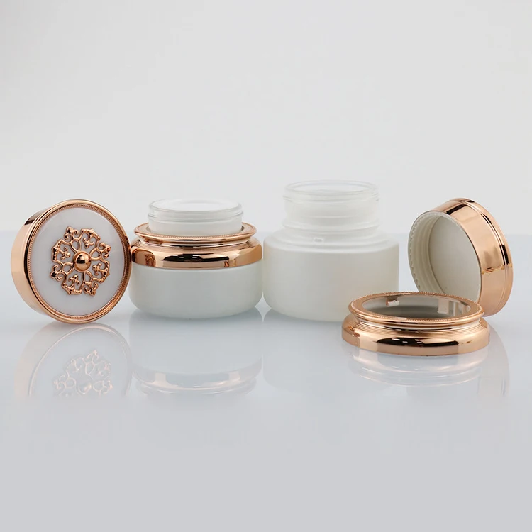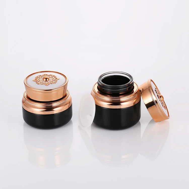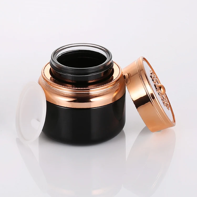 Factory Stock Luxury 1OZ 30ml 50ml Rose Gold Lid with Beautiful Pattern and Black Cosmetic Glass Cream Jar