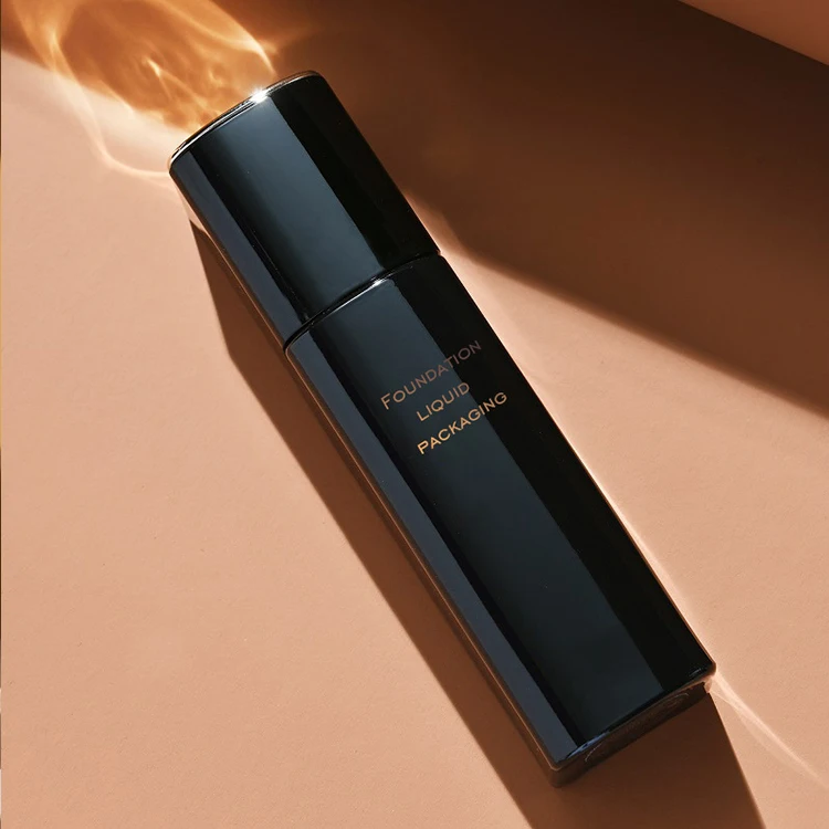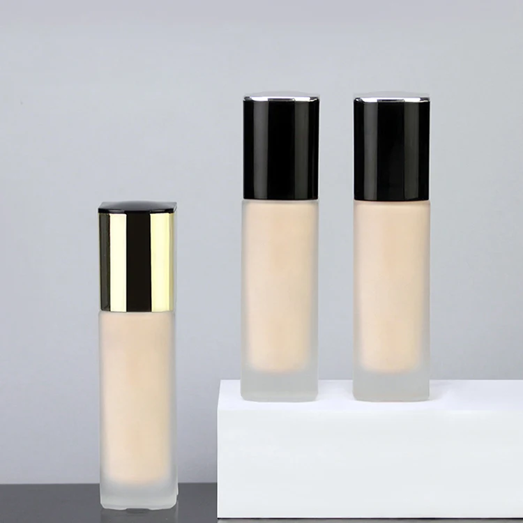 Factory Customized 30ml square Luxury White Black Golden Lotion Liquid Foundation Glass Pump Bottle
