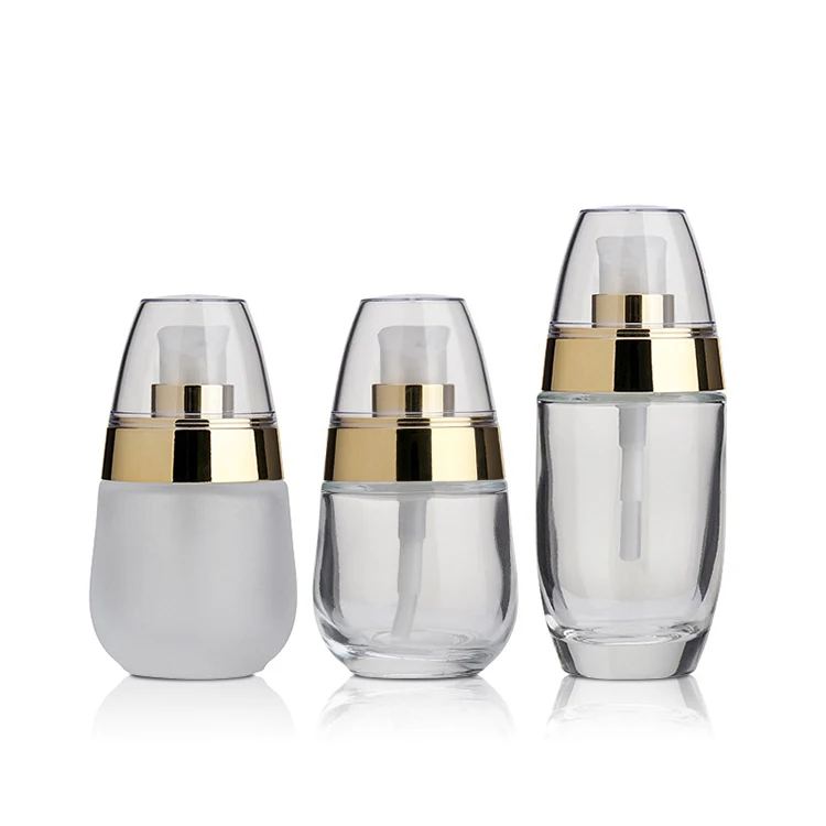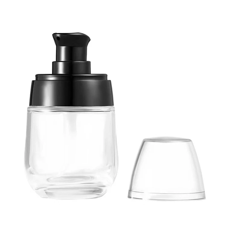 Very Good Quality Luxury Glass Clear Round Cosmetic Skincare Packaging 30ml Lotion Pump Bottle