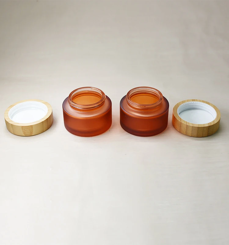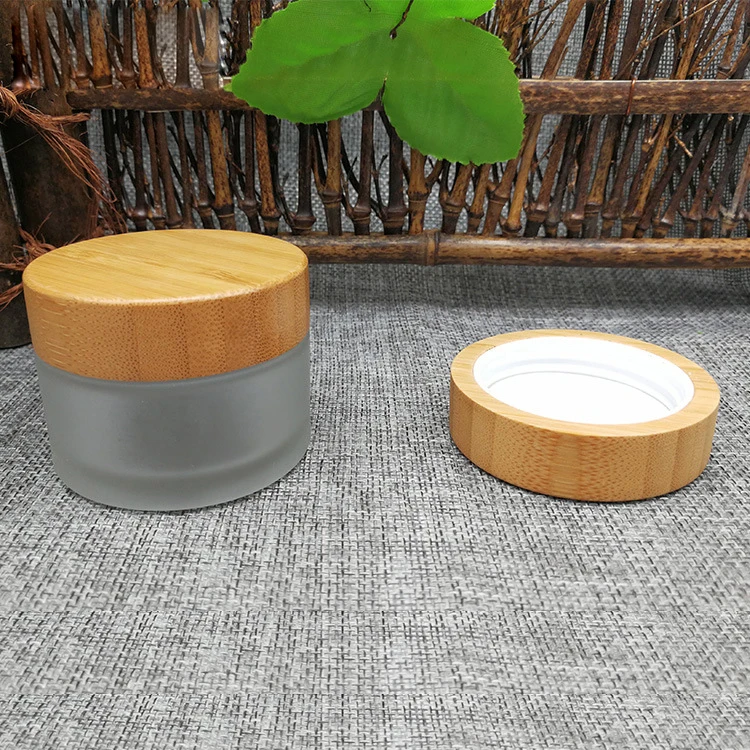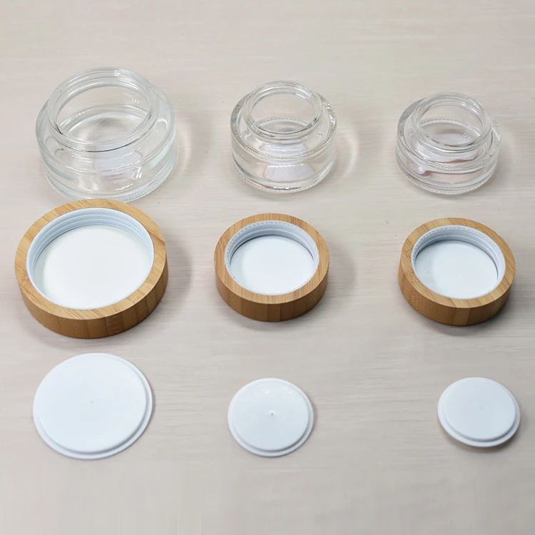 5ml 10ml 30ml 50ml 100ml clear Frosted Empty Glass Cosmetic Cream Jar with Natural Bamboo Lid