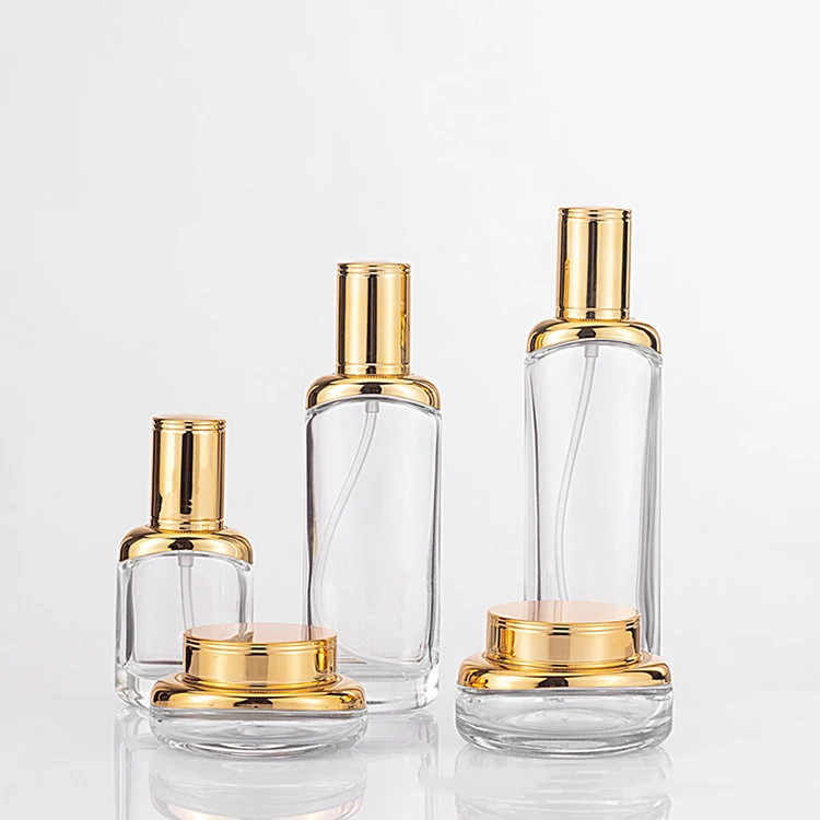 High End 30ml/50ml Glass Bottle 30g/50g/100g Jar Pump Bottle Set for Skin Care Face Cream Lotion Serum Eye Drop for Cosmetics