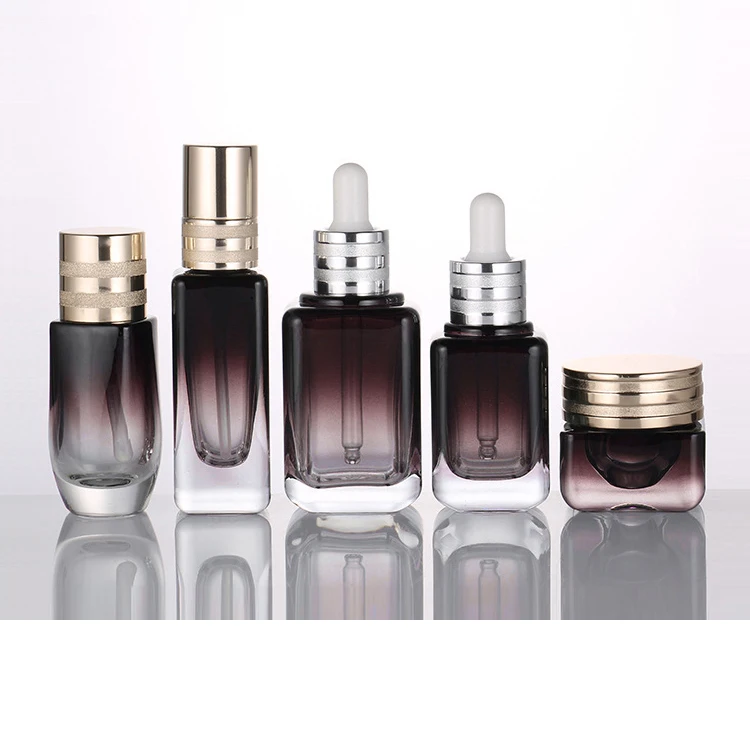 Black Gradient square 20g 50g Glass Jar and Black and Matt Gold Lid Glass Packaging Set 40ml 100ml 120ml