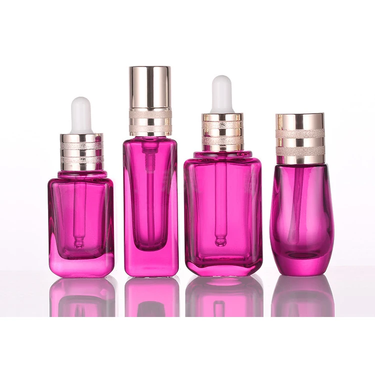 10ml 20ml 30ml 40ml Colorful Amber square Cosmetic Essential Oil Serum Glass Press Pump Dropper Bottle with Press Dropper