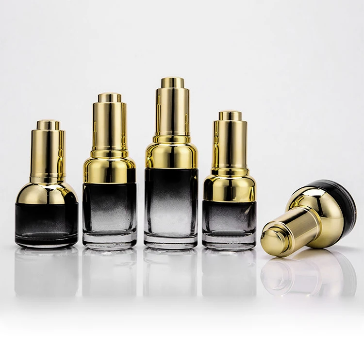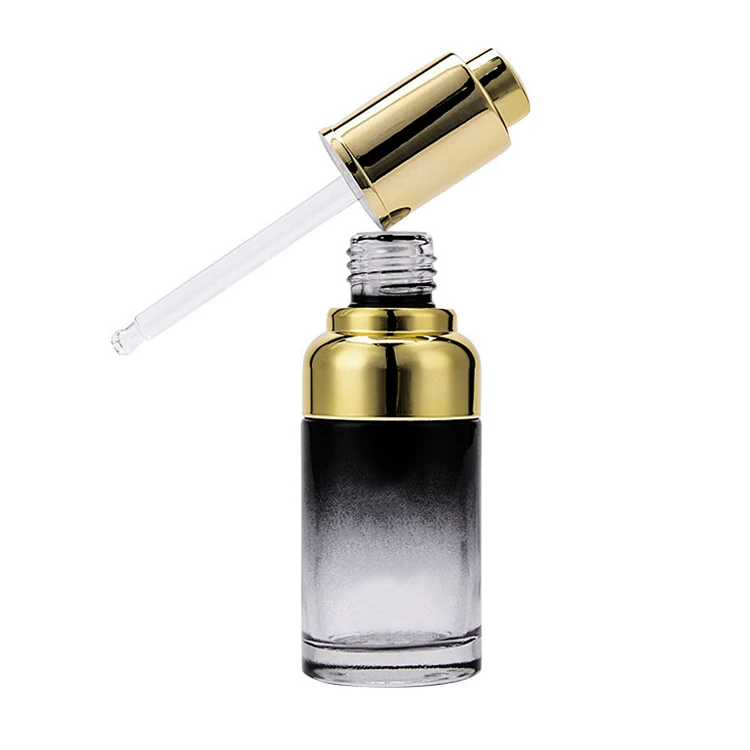 Wholesale Cylinder 20ml 30ml 50ml Essential Oil Glass Bottle with Golden Shoulder Shank Dropper Cap