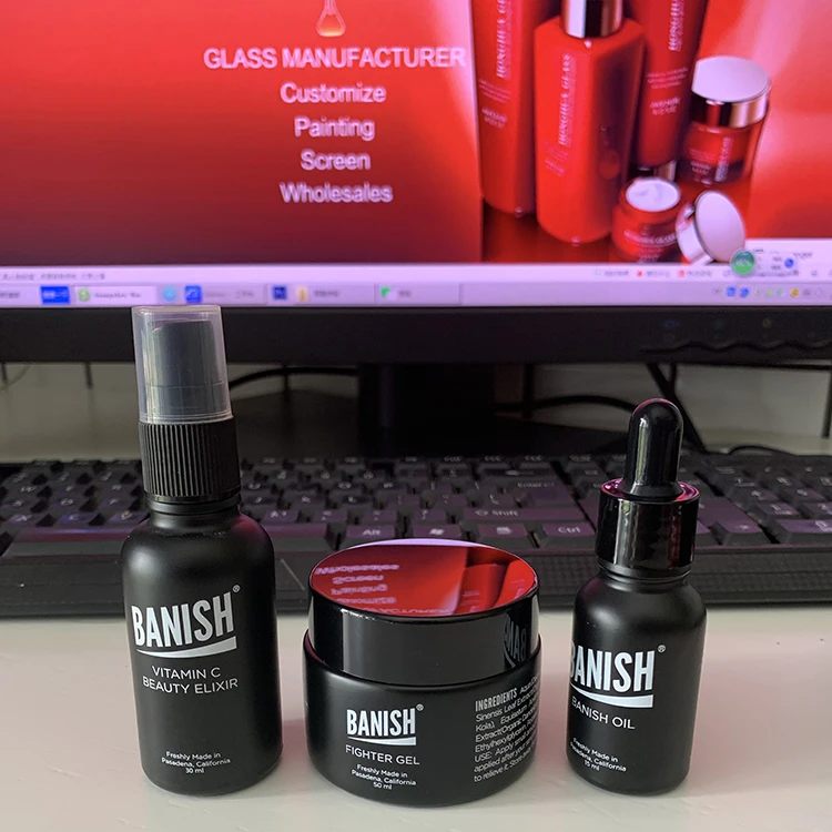 Hot Sale 15ml 30ml 50ml 100ml Frosted clear Black Glass Cosmetic Cream Jar with Black Aluminum Lid