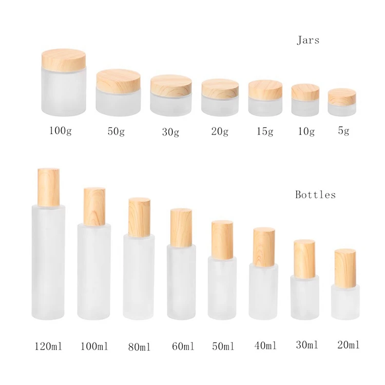 5g 10g 20g 30g 50g 60g 100g 50g 100g Frost Glass Jar with Wooden Pattern Lid