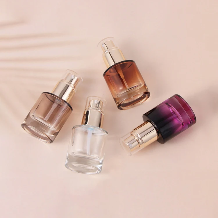 Very Good Quality Luxury Glass Clear Round Cosmetic Skincare Packaging 30ml Lotion Pump Bottle